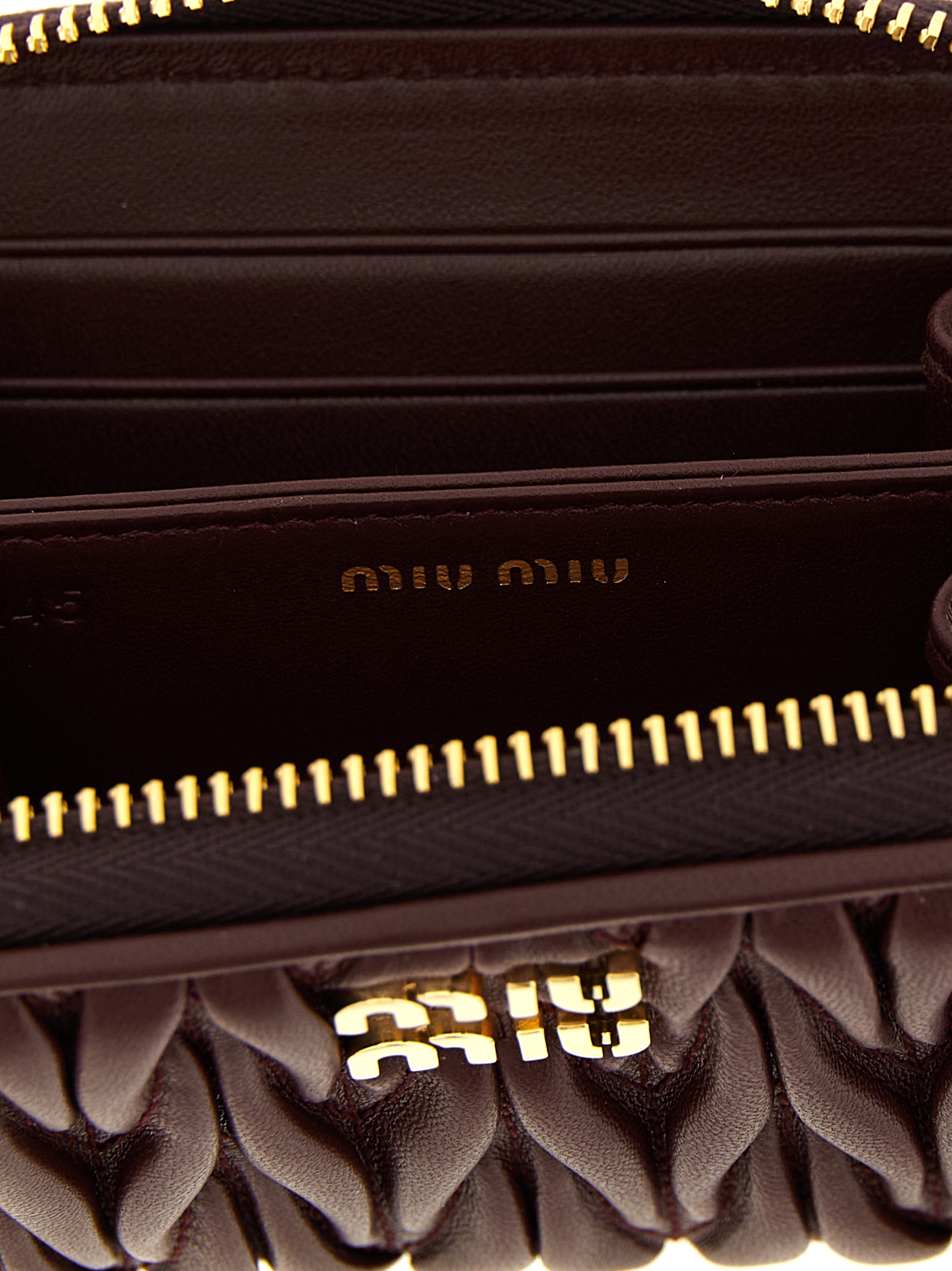 Small wallet in matelassé nappa leather, zip closure, front metal logo.