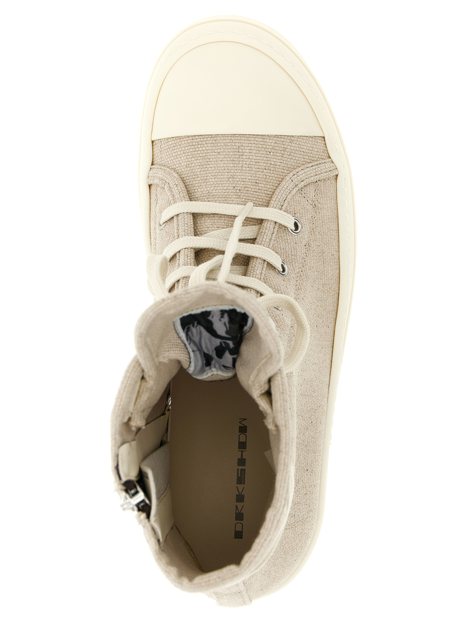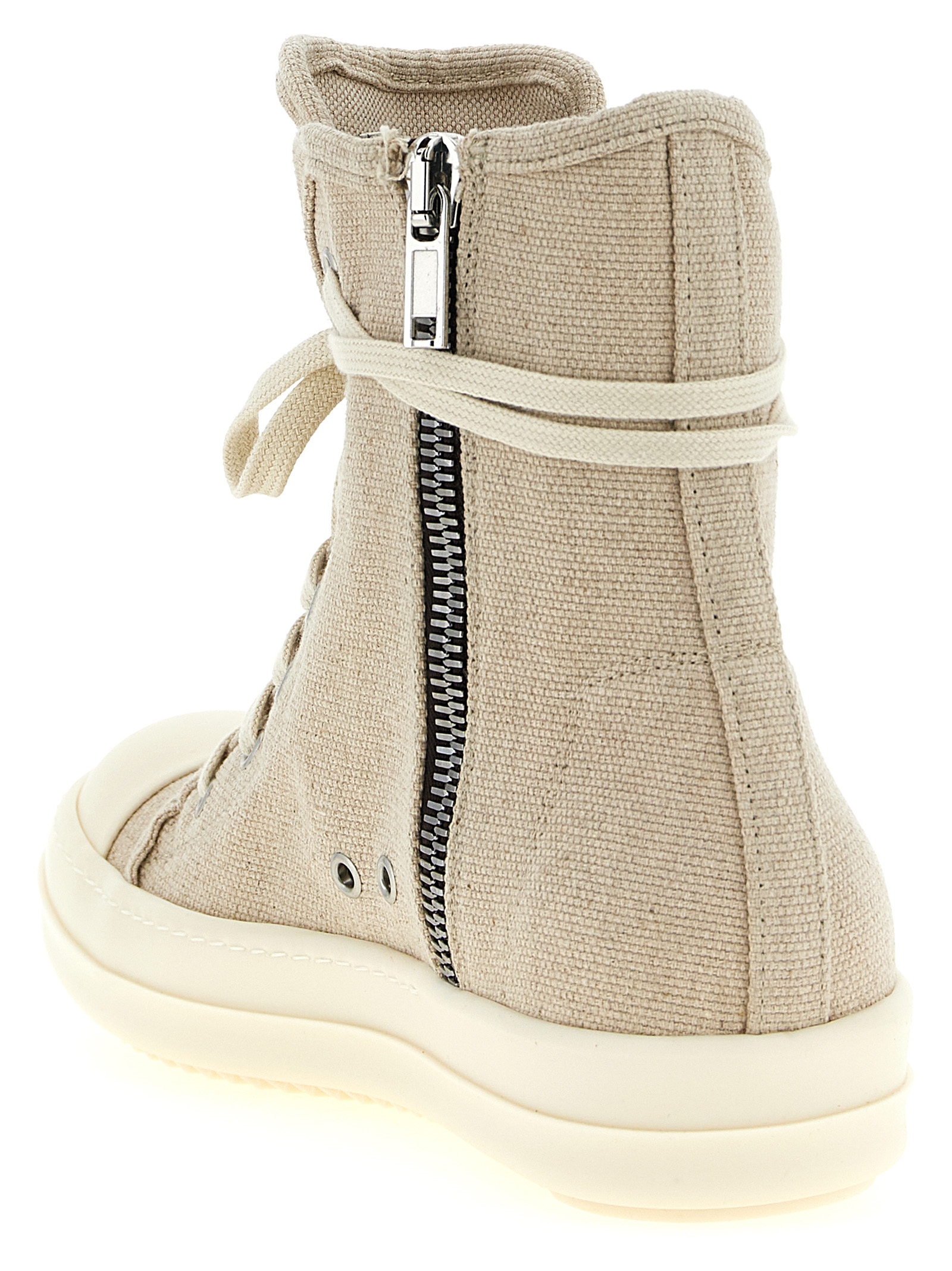 ‘Sneaks’ sneakers in thick measured cotton and linen canvas, front lace closure and side zip, rubber sole and toe.
