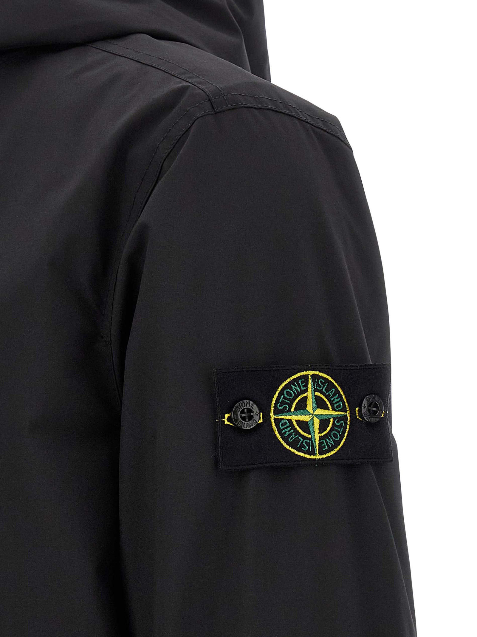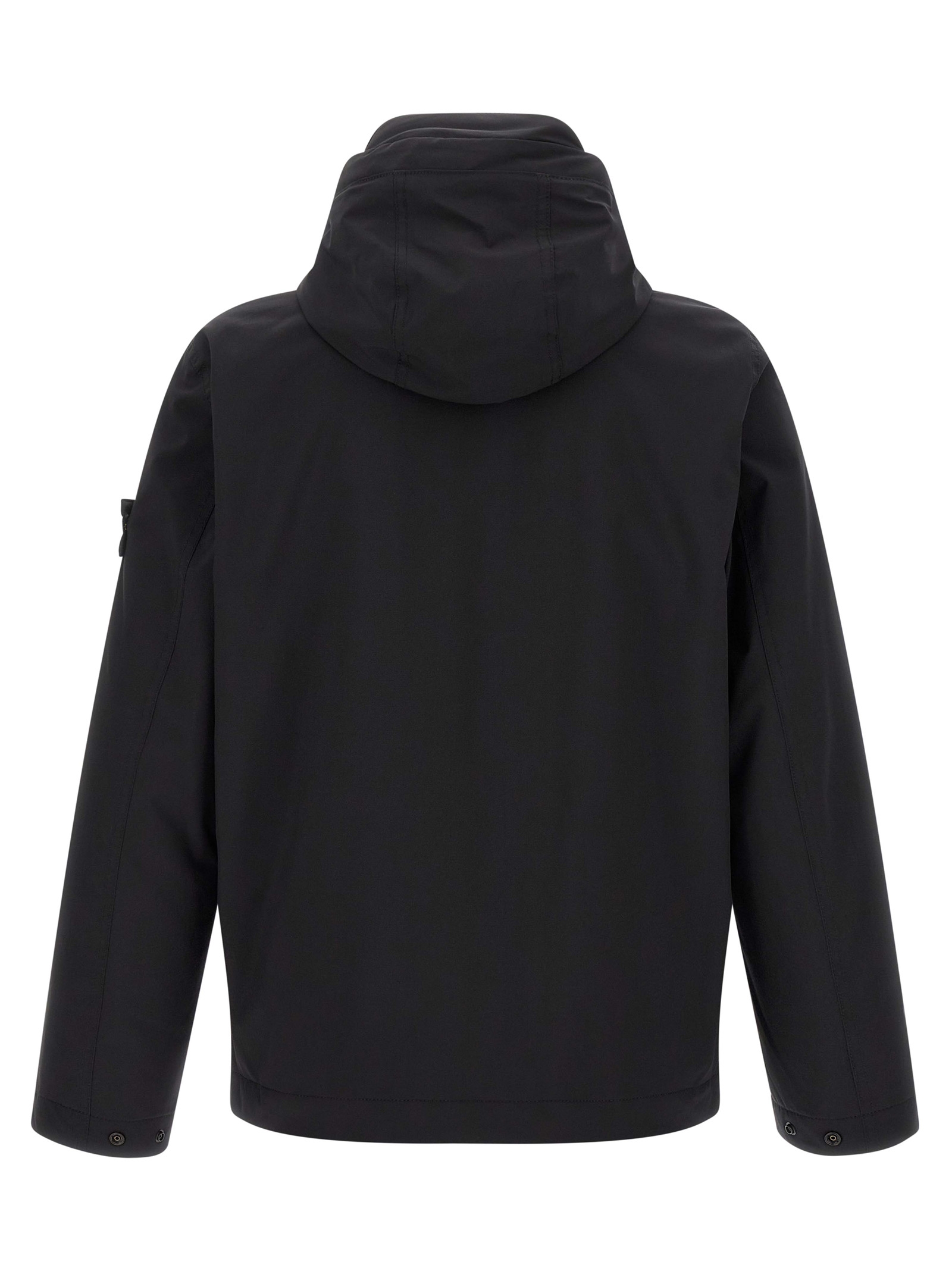‘Soft Shell-R e.dye® Technology’ jacket in stretch polyester canvas woven with e.dye® Waterless Color System™ technology yarns, padding, hood, front zip closure, pockets, long sleeves with cuffs and logo badge, drawstring on the hem.