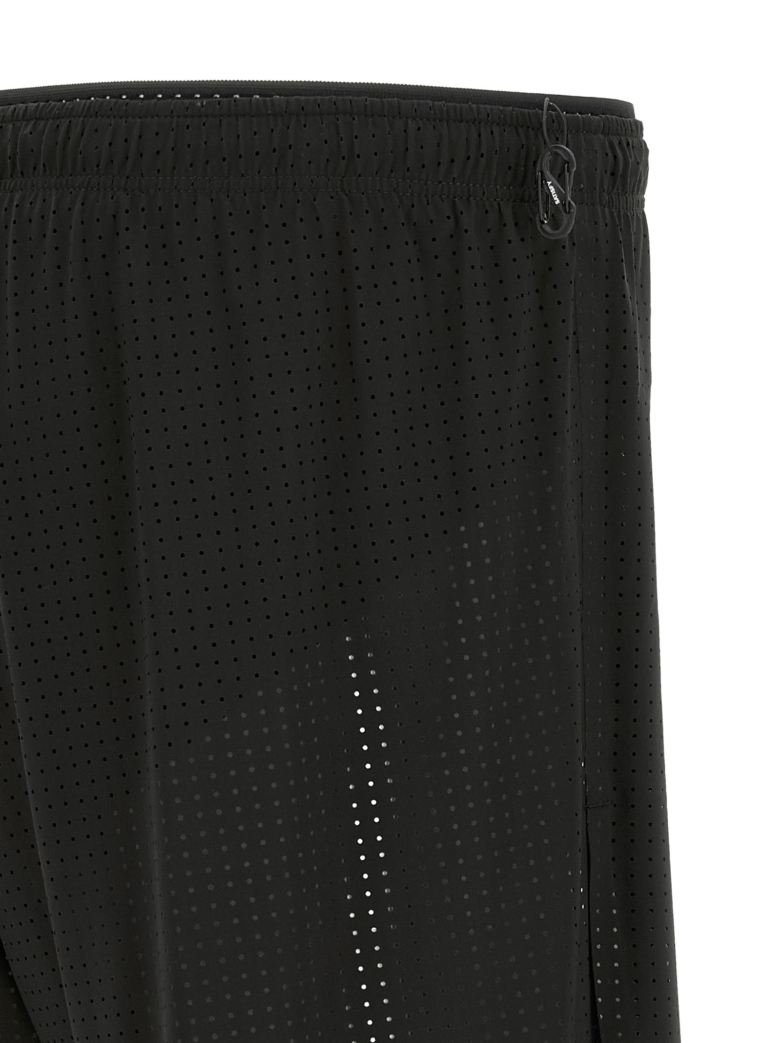 ‘Space-O™ 5’ knitted Italian micro jersey™ bermuda shorts with micro-holes made by laser with the ‘Punh-out’ technique, double band structure and drawstring at the waist, mini S-carabiner in the waistband, sweat-resistant mobile phone pocket hidden in the belt, wide leg, side slits at the bottom of the leg, label with instructions for Fully detachable wash on the outside, inner briefs in Justice™ fabric.
