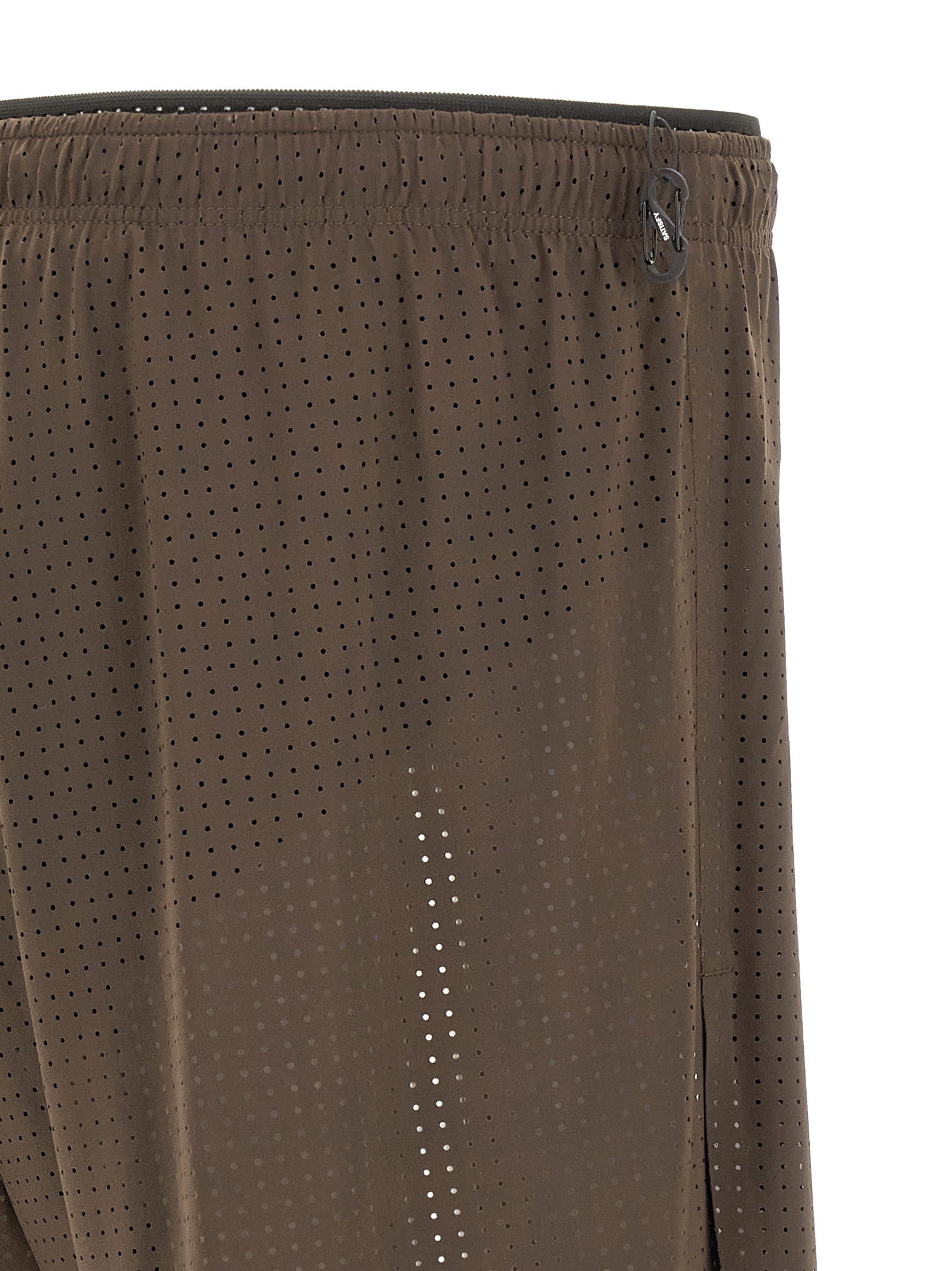 ‘Space-O™ 5’ knitted Italian micro jersey™ bermuda shorts with micro-holes made by laser with the ‘Punh-out’ technique, double band structure and drawstring at the waist, mini S-carabiner in the waistband, sweat-resistant mobile phone pocket hidden in the belt, wide leg, side slits at the bottom of the leg, label with instructions for Fully detachable wash on the outside, inner briefs in Justice™ fabric.