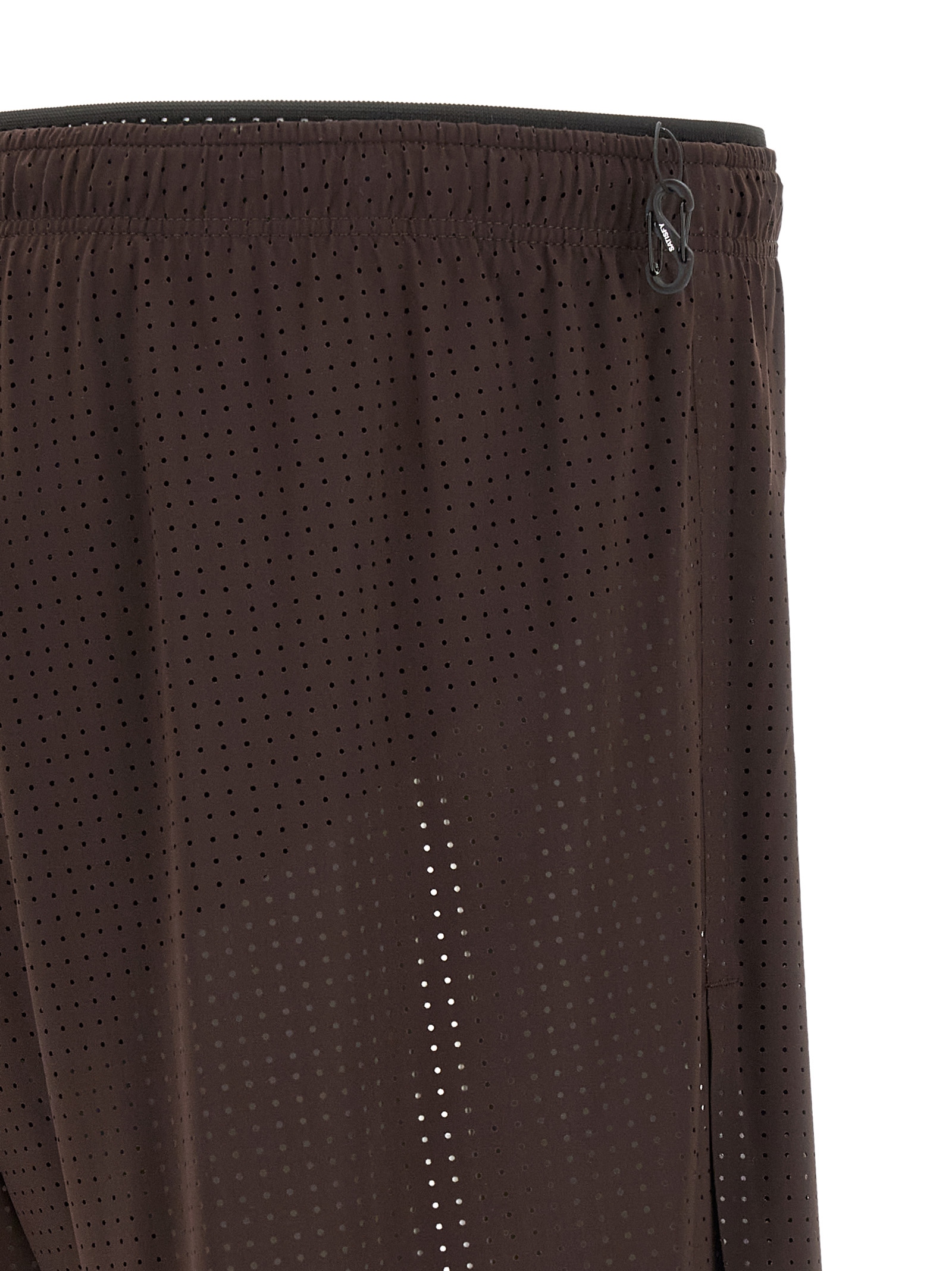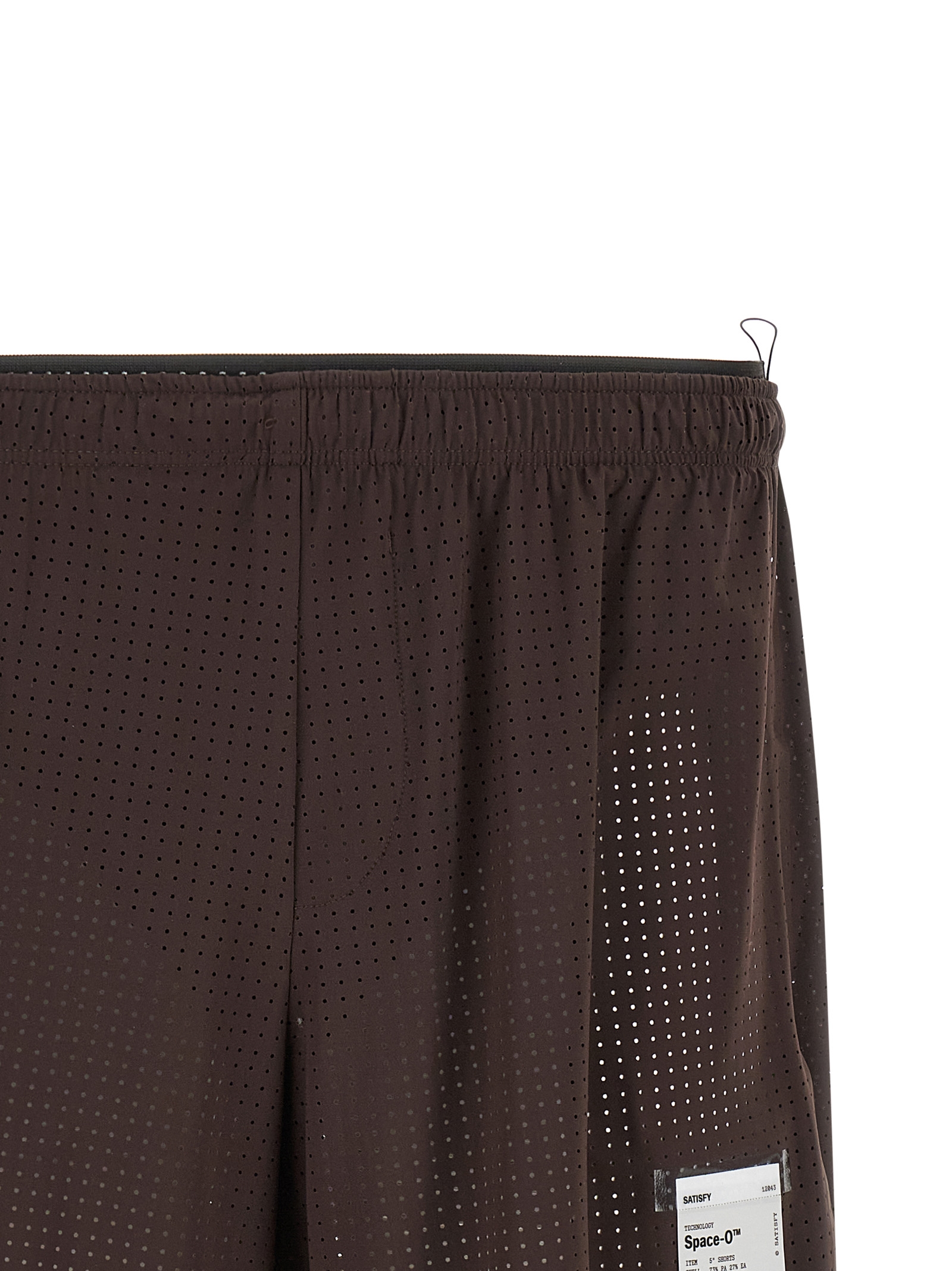 ‘Space-O™ 5’ knitted Italian micro jersey™ bermuda shorts with micro-holes made by laser with the ‘Punh-out’ technique, double band structure and drawstring at the waist, mini S-carabiner in the waistband, sweat-resistant mobile phone pocket hidden in the belt, wide leg, side slits at the bottom of the leg, label with instructions for Fully detachable wash on the outside, inner briefs in Justice™ fabric.