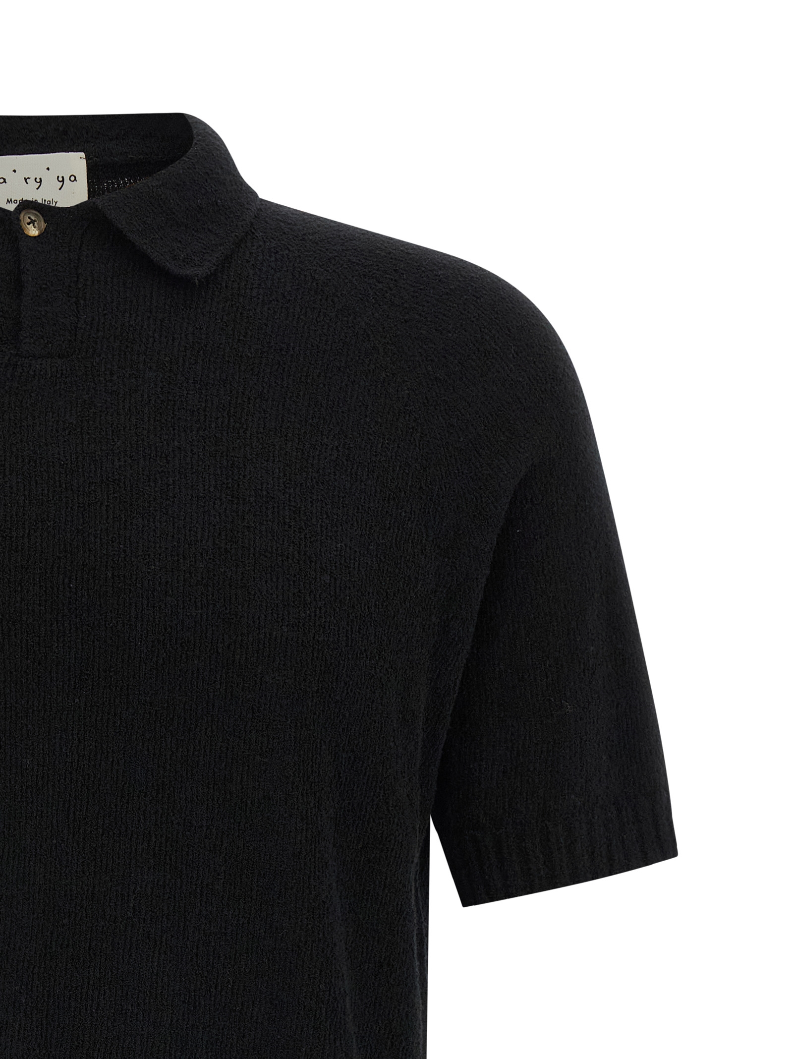 Polo shirt in cotton blend with spongy effect, collar and button, short sleeves with cuffs, side slits, band on the hem.