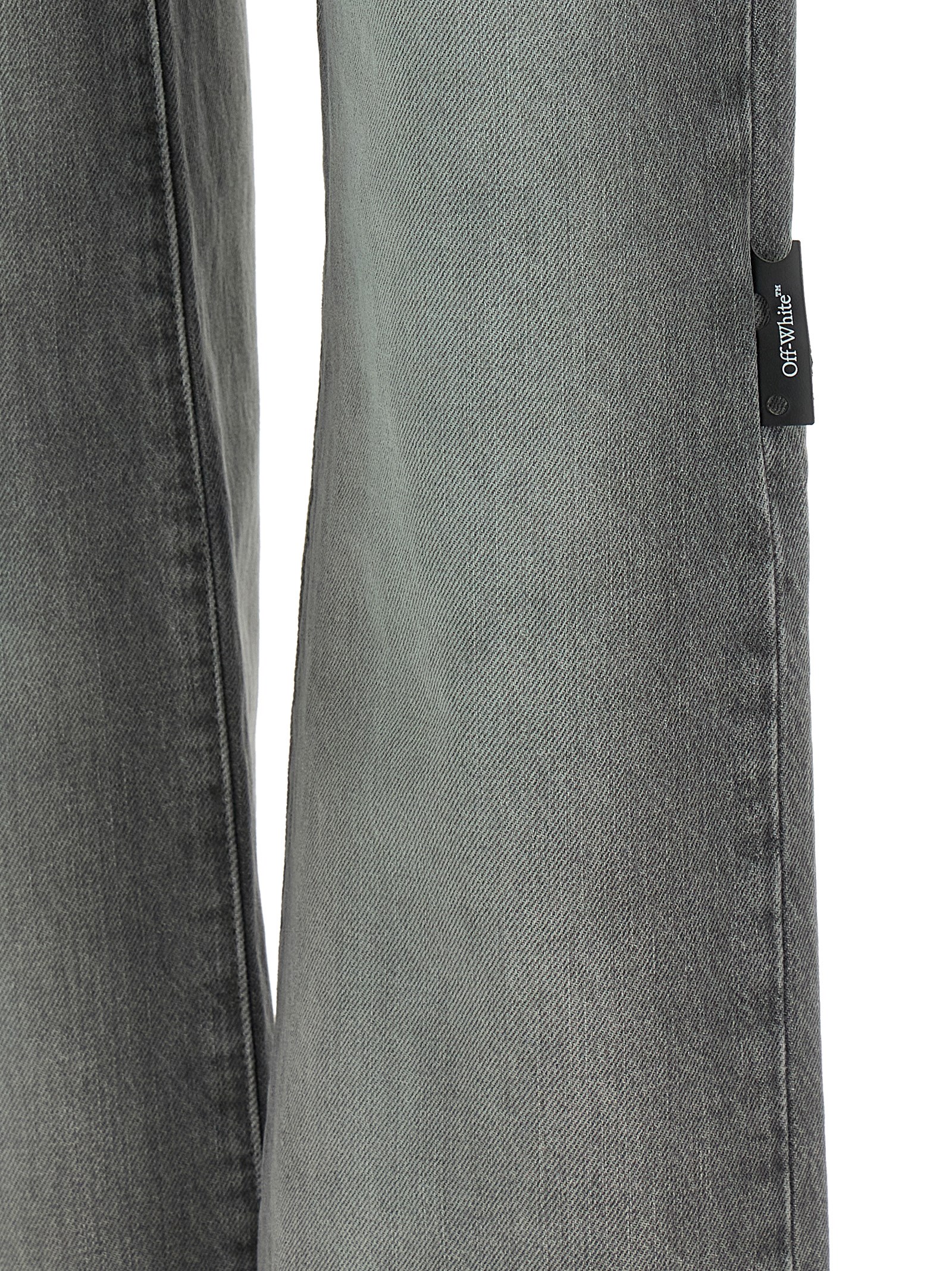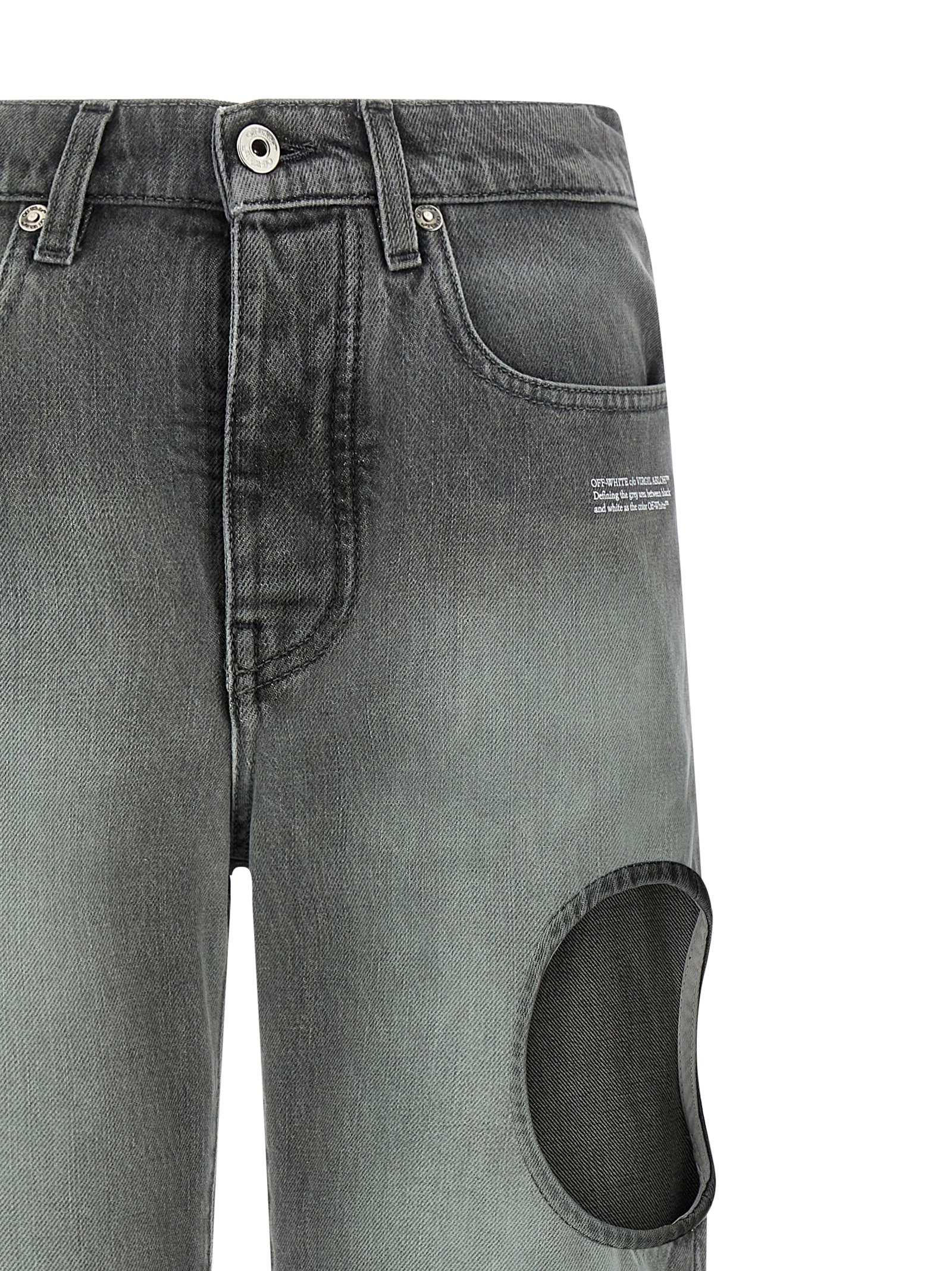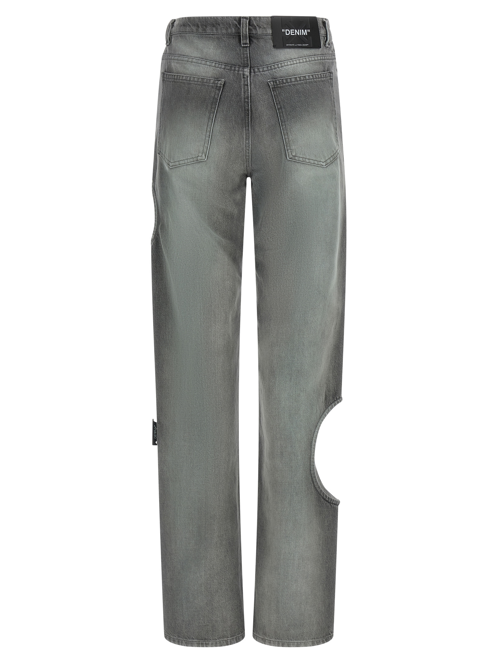 ‘Spray New Meteor’ délavé cotton denim jeans with cut-out hoop details, straight leg, front button print and closure, five pockets, back logo tag.