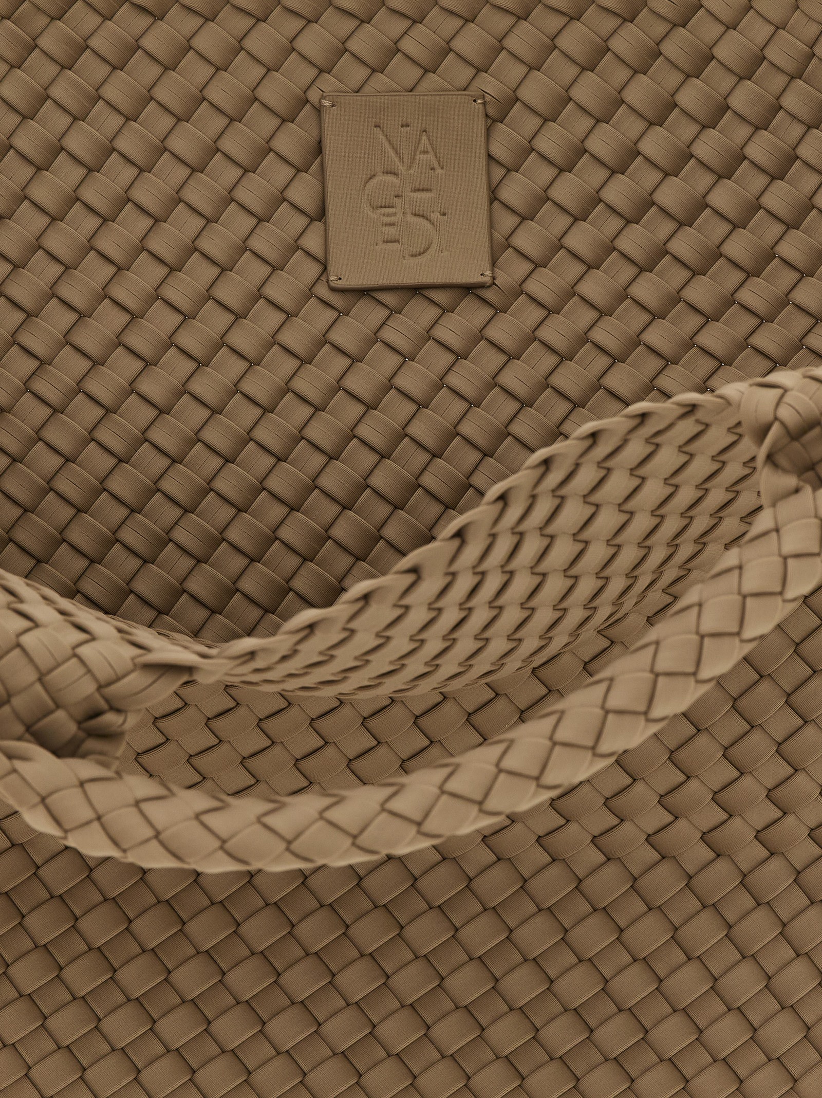 Hand-woven neoprene St. Barths Large shopping, double fixed handle, tone-on-tone logo patch on the side, and removable matching clutch.