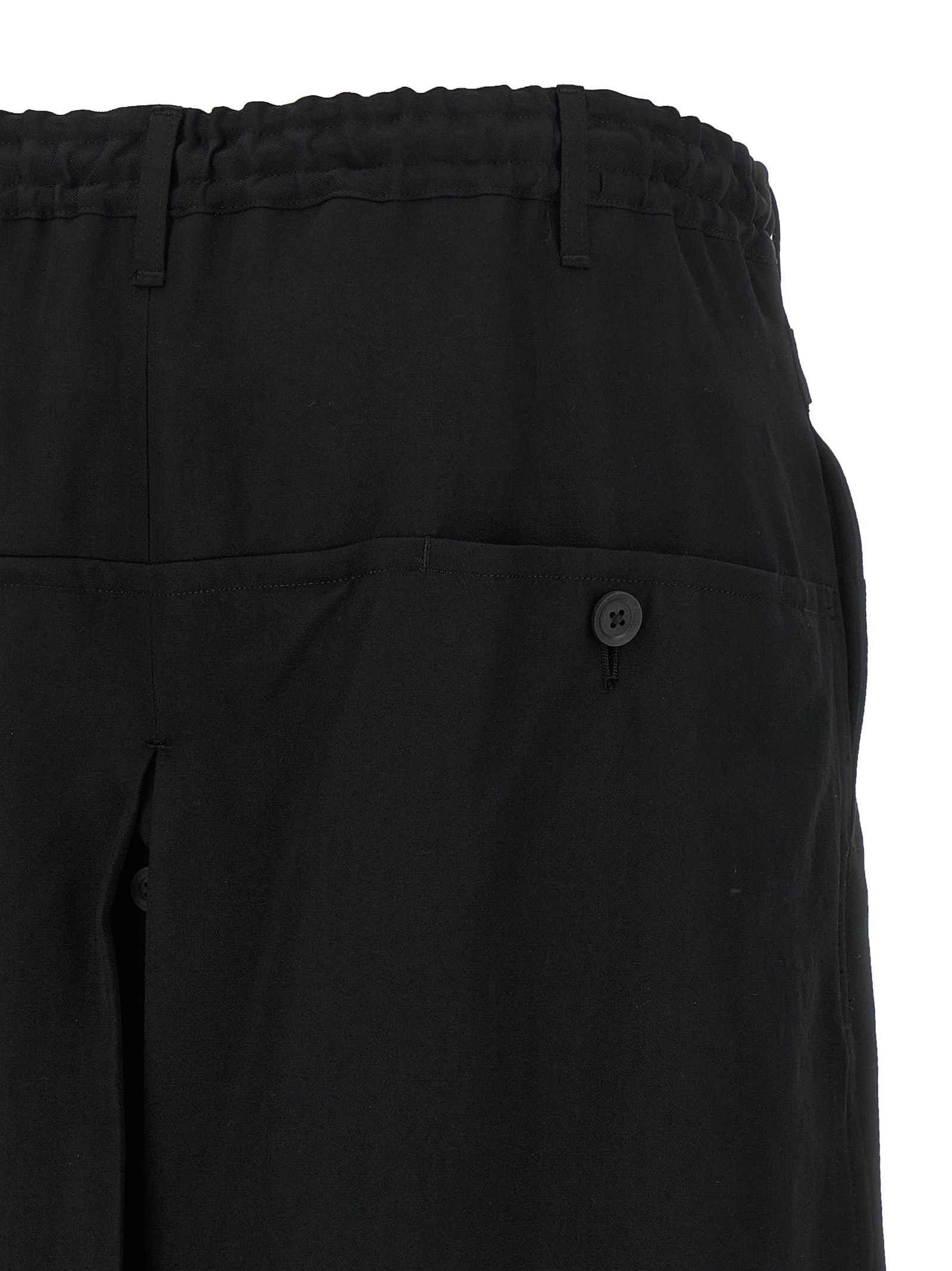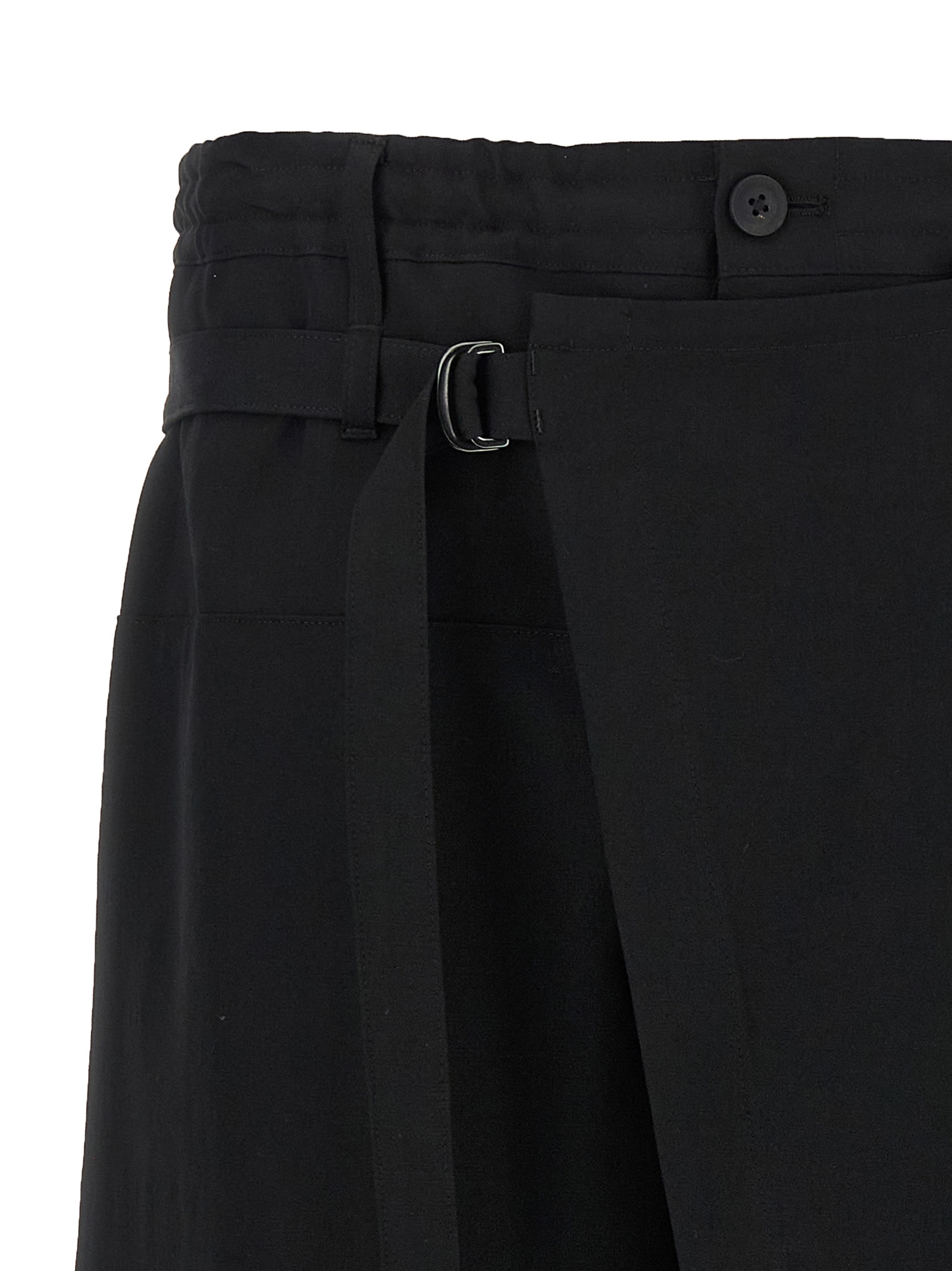 ‘Standard Wrap’ cool wool pants, adjustable panel leg with waist strap and back split that can be closed with buttons, front button and zip closure, adjustable drawstring at the waist, back and side pockets.