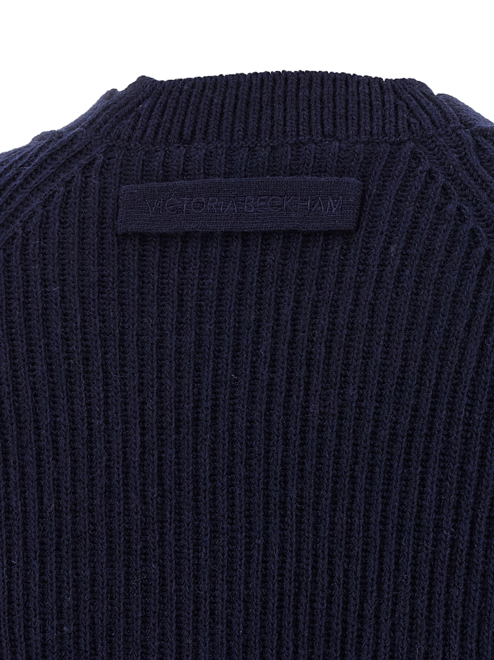 ‘Stepped Hem’ cashmere blend cardigan with V-neck, button closure, front pockets, side splits, long cuffed sleeves.