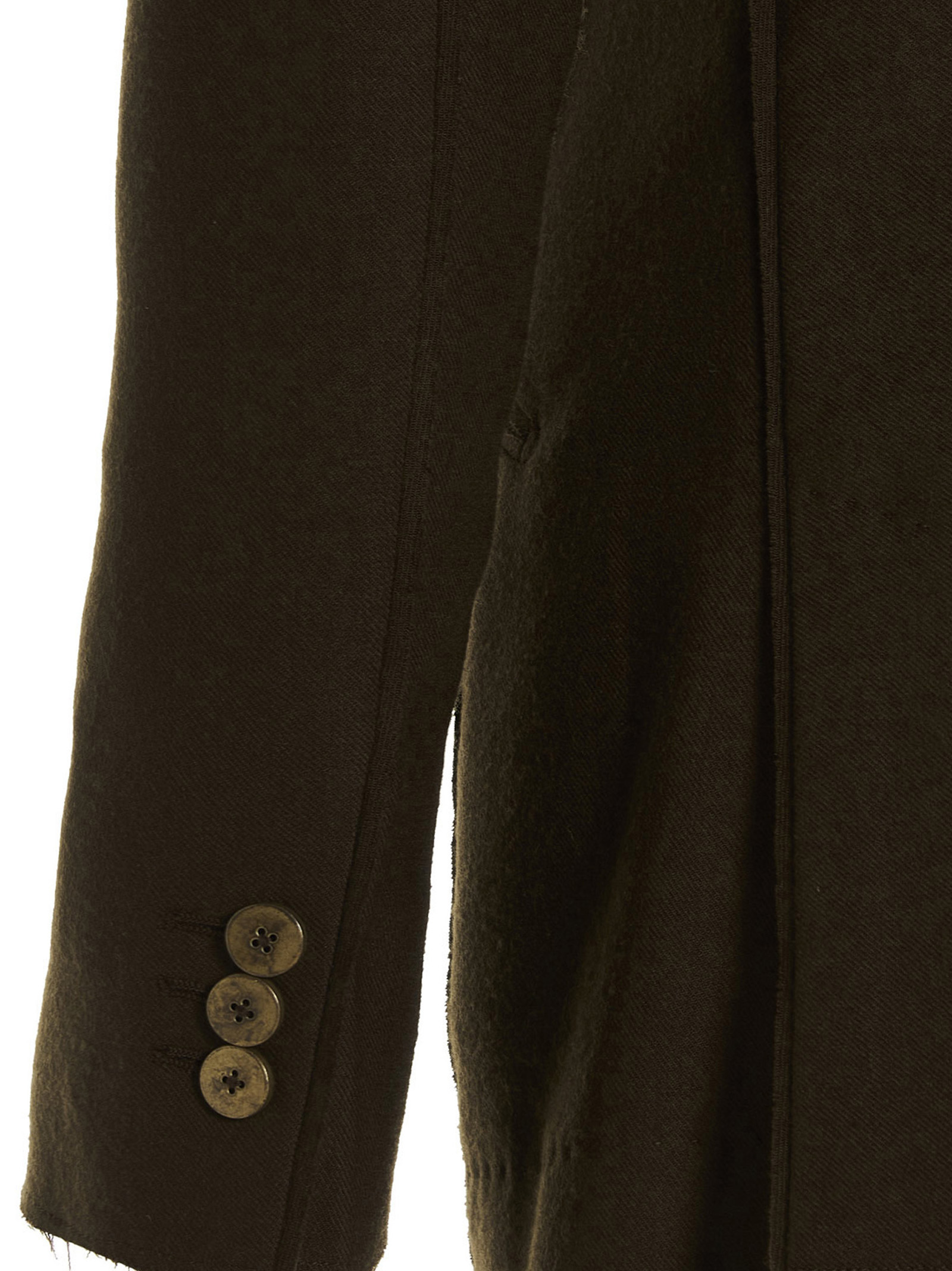 ‘Stevie’ double-breasted wool blazer with button closure, pockets, long sleeves, vents at the back.
