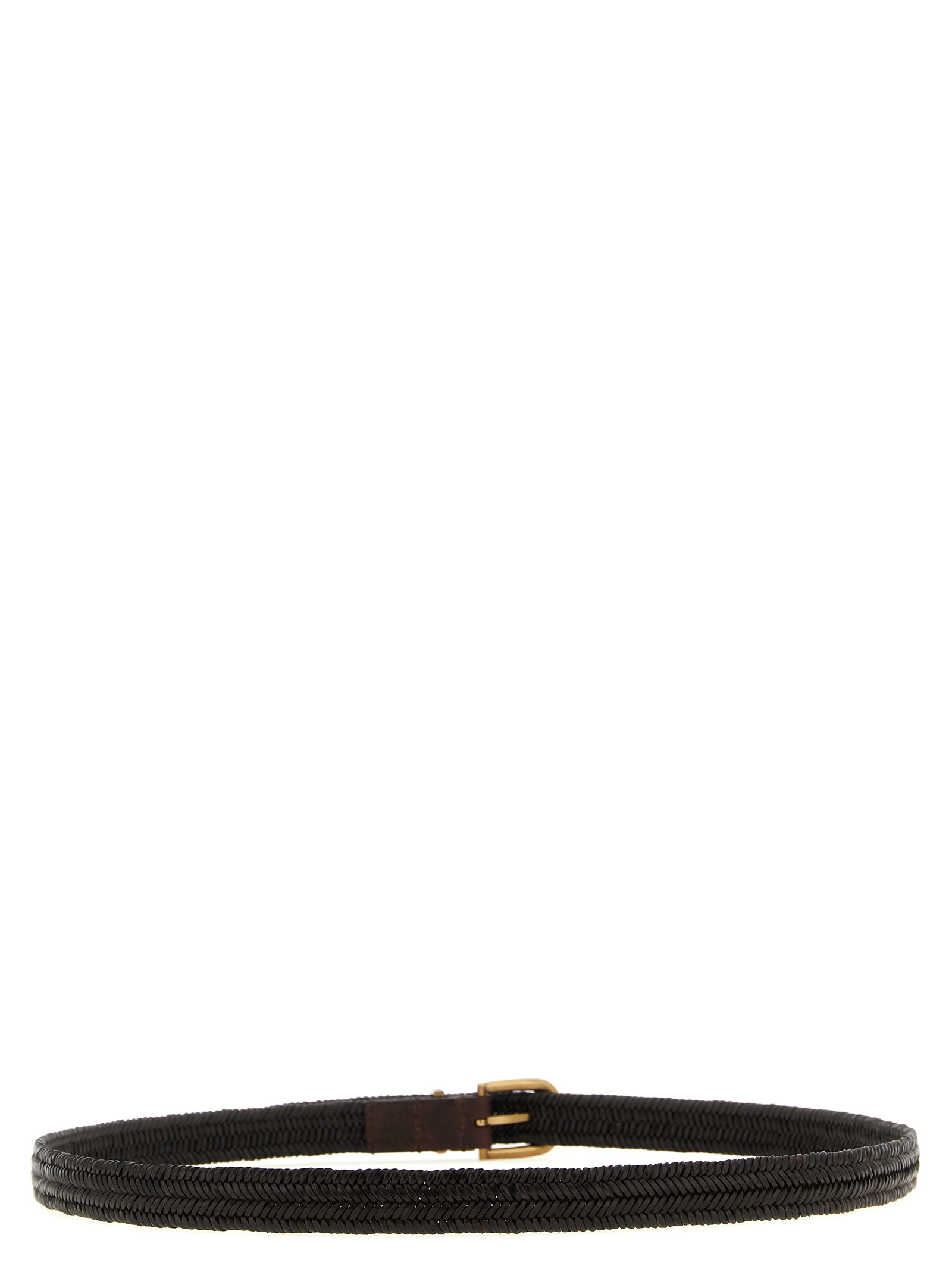 Braided stretch leather belt, metal buckle and loop with tone-on-tone jewel detail.