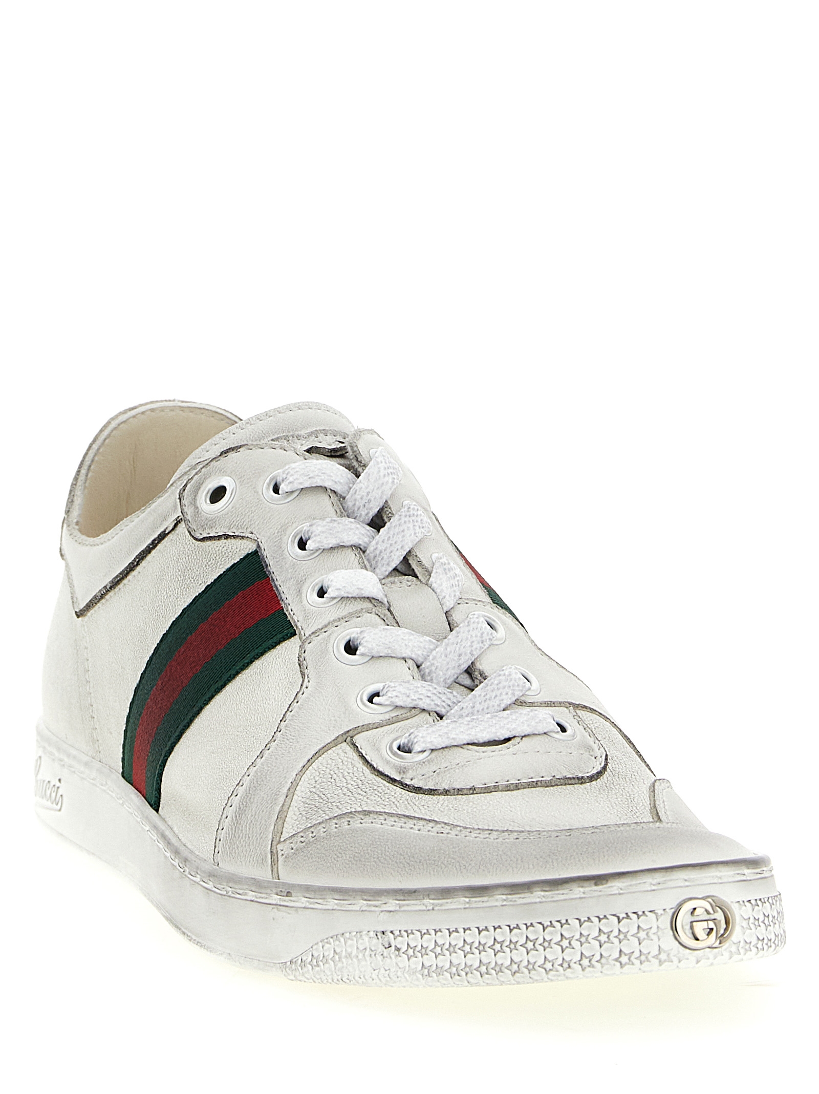 ‘Stretch’ sneakers in stretch leather treated by hand to achieve a worn look, light, soft and flexible silhouette, metal ‘Incrocio GG’ detail on the toe and leather patch on the tongue, ‘Web Ribbon’ in grosgrain on the side, lace-up closure, rubber sole.