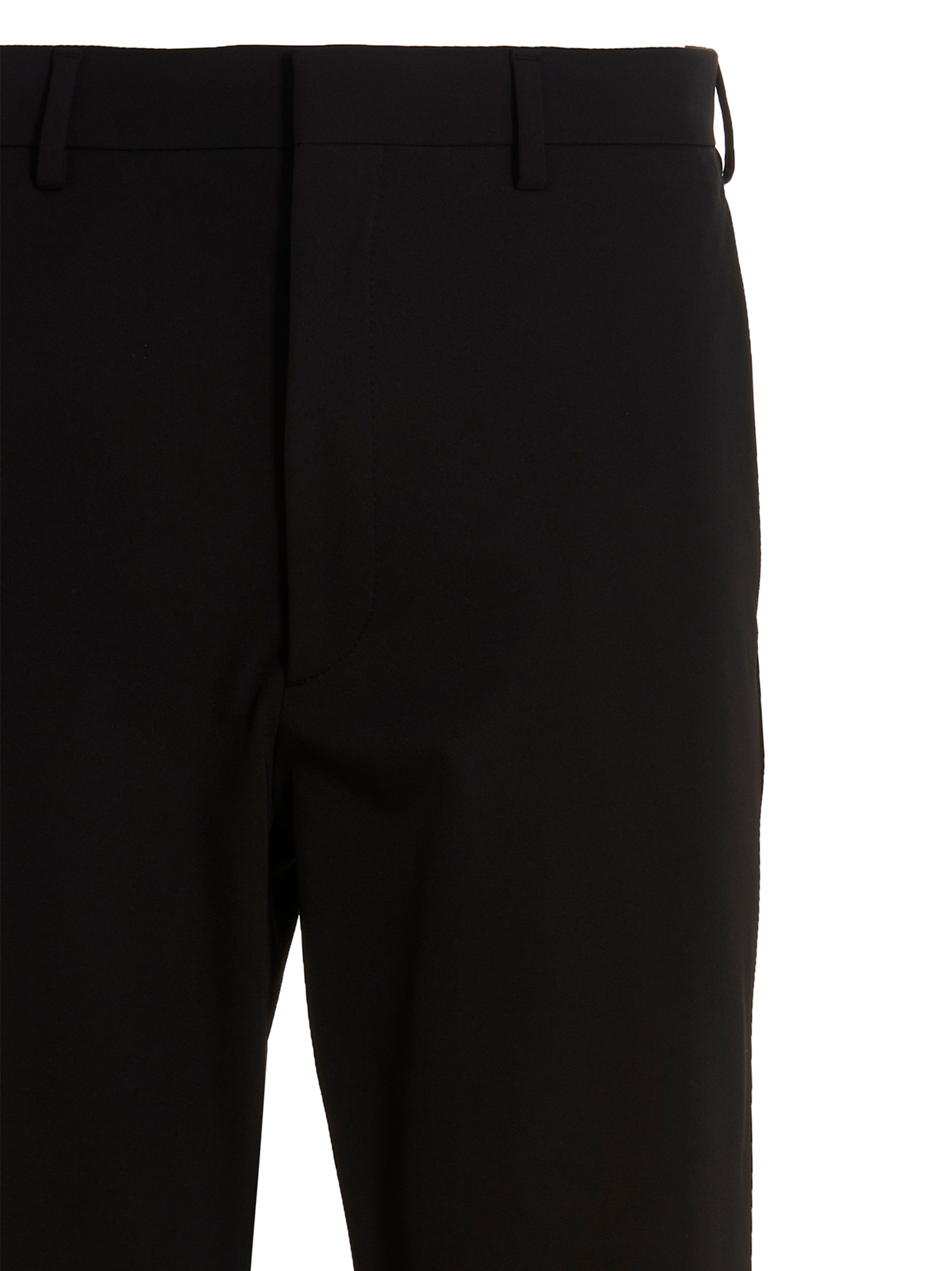 Stretch techno fabric pants with a hook-and-eye and button zip closure, pockets and zip detailing on the leg bottoms.