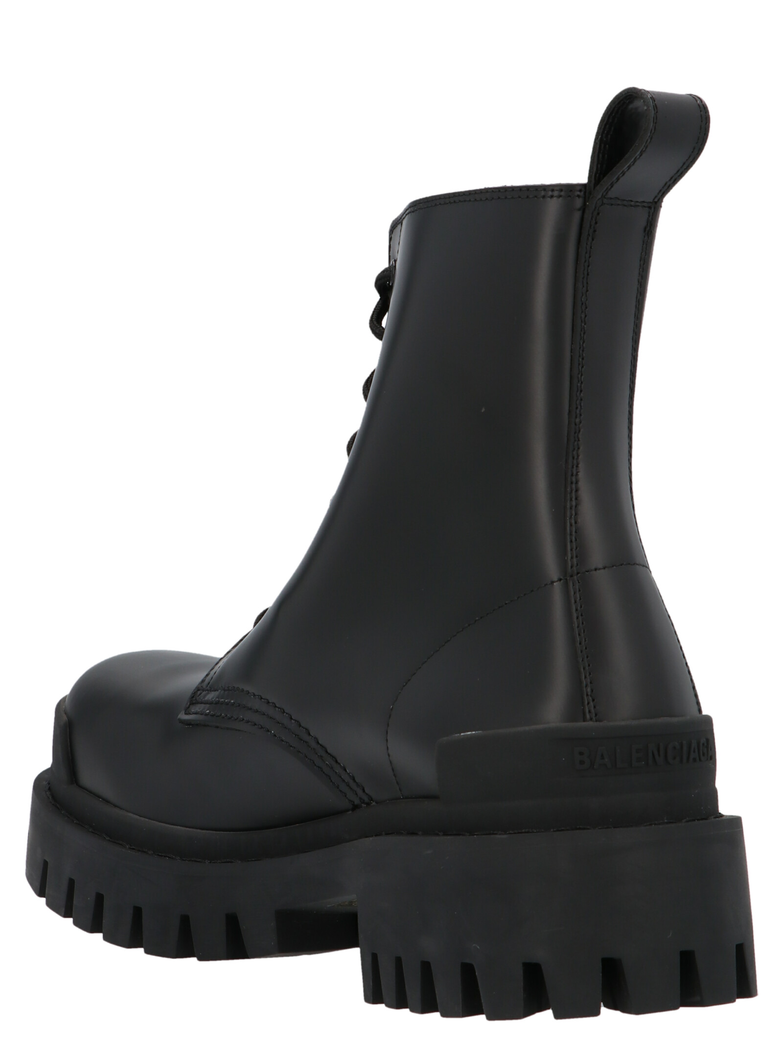 ‘Strike’ leather laced boots with a tank sole and a tone-on-tone embossed logo.