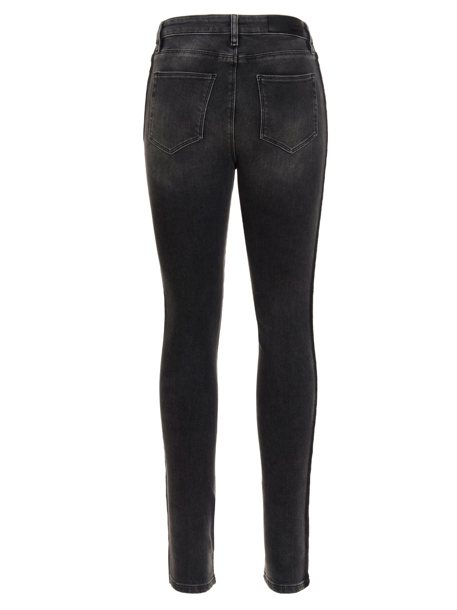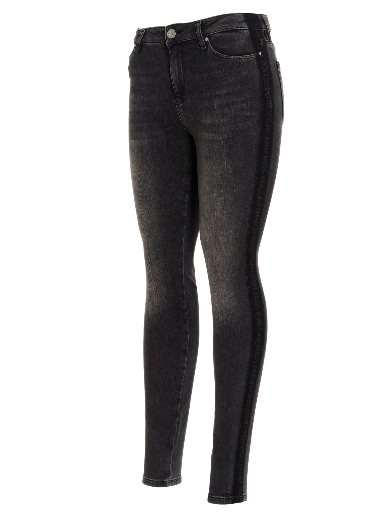 ‘Stripe Skinny Denim’ five-pocket denim jeans with a logo patch at the back and a logo band detail.