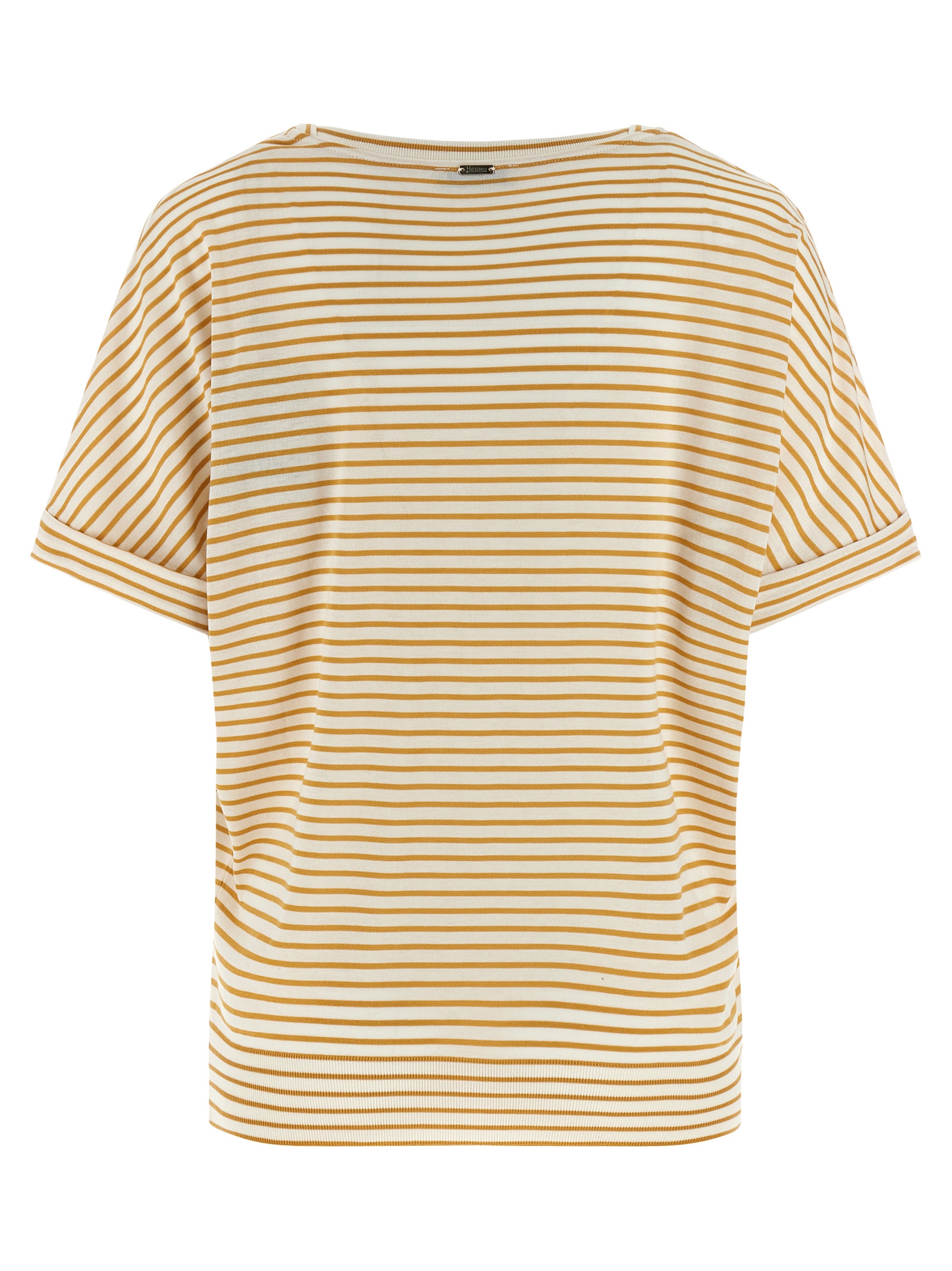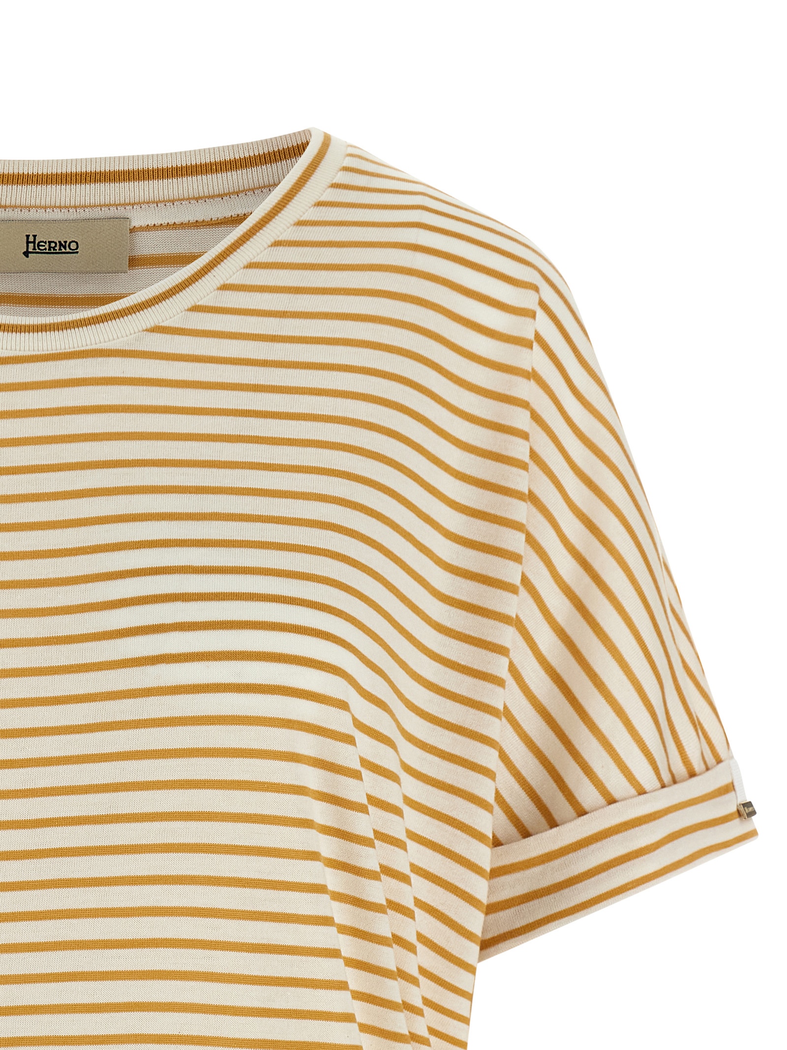 Striped lyocell and cotton blend T-shirt, with round neckline, short sleeves with turned-up cuffs, and band on the hem.