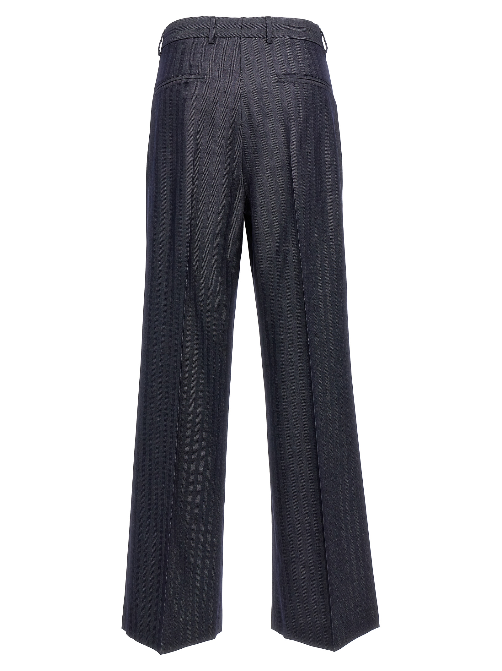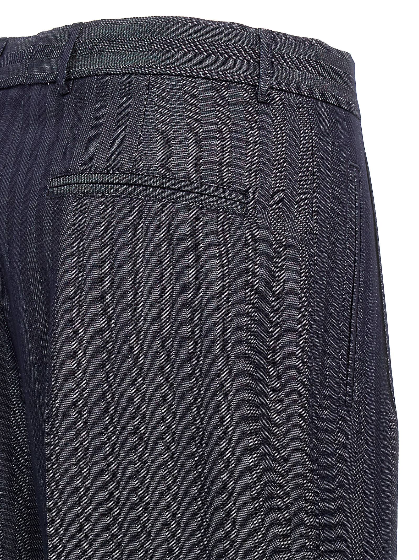 Striped tailored pants in wool blend, hook and button zip closure, ironed pleat and pleat, pockets.