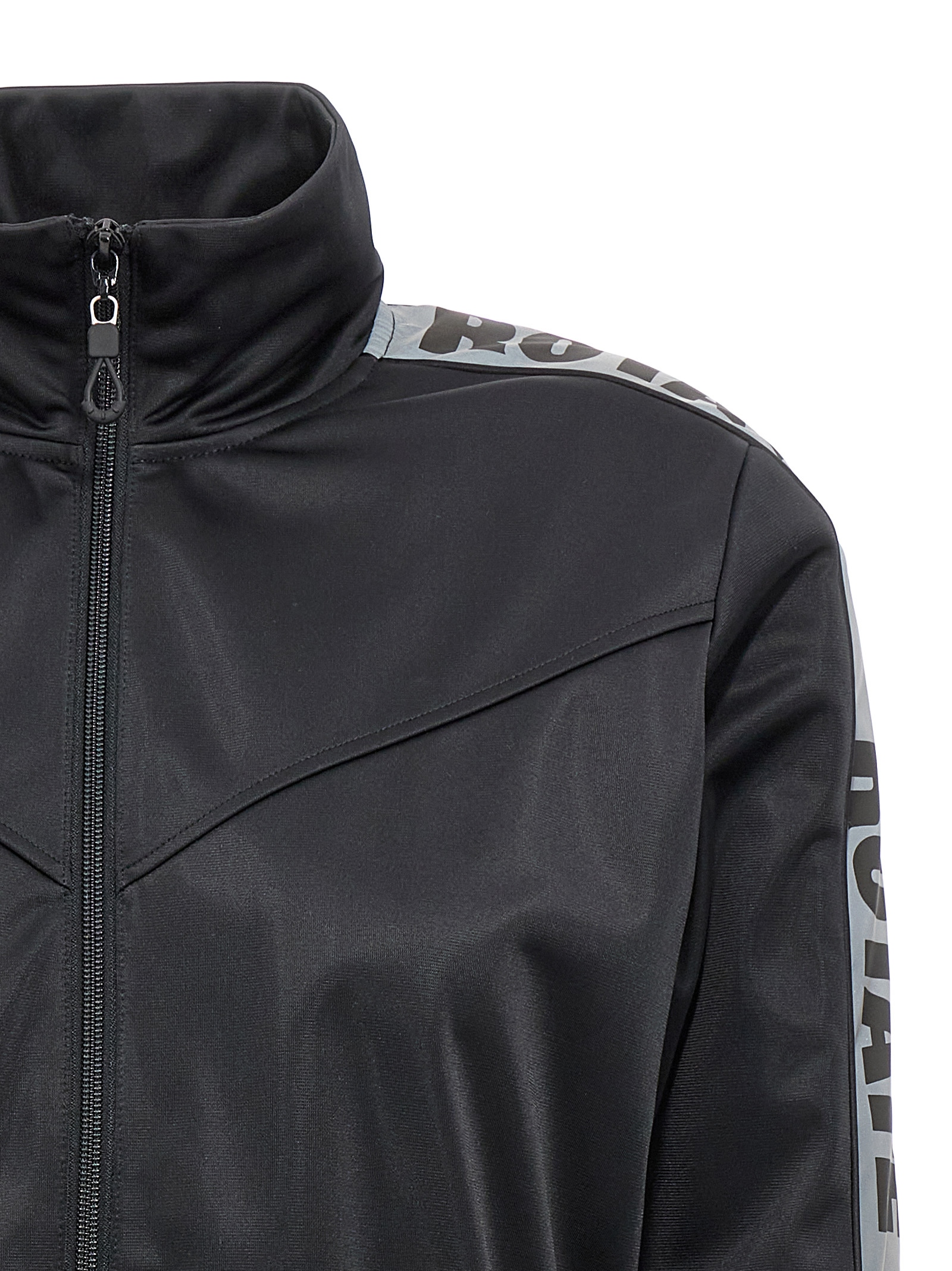 Sunday capsule cropped sweatshirt in technical fabric with logo band on the sleeves, high collar, zipper closure, and long sleeves.