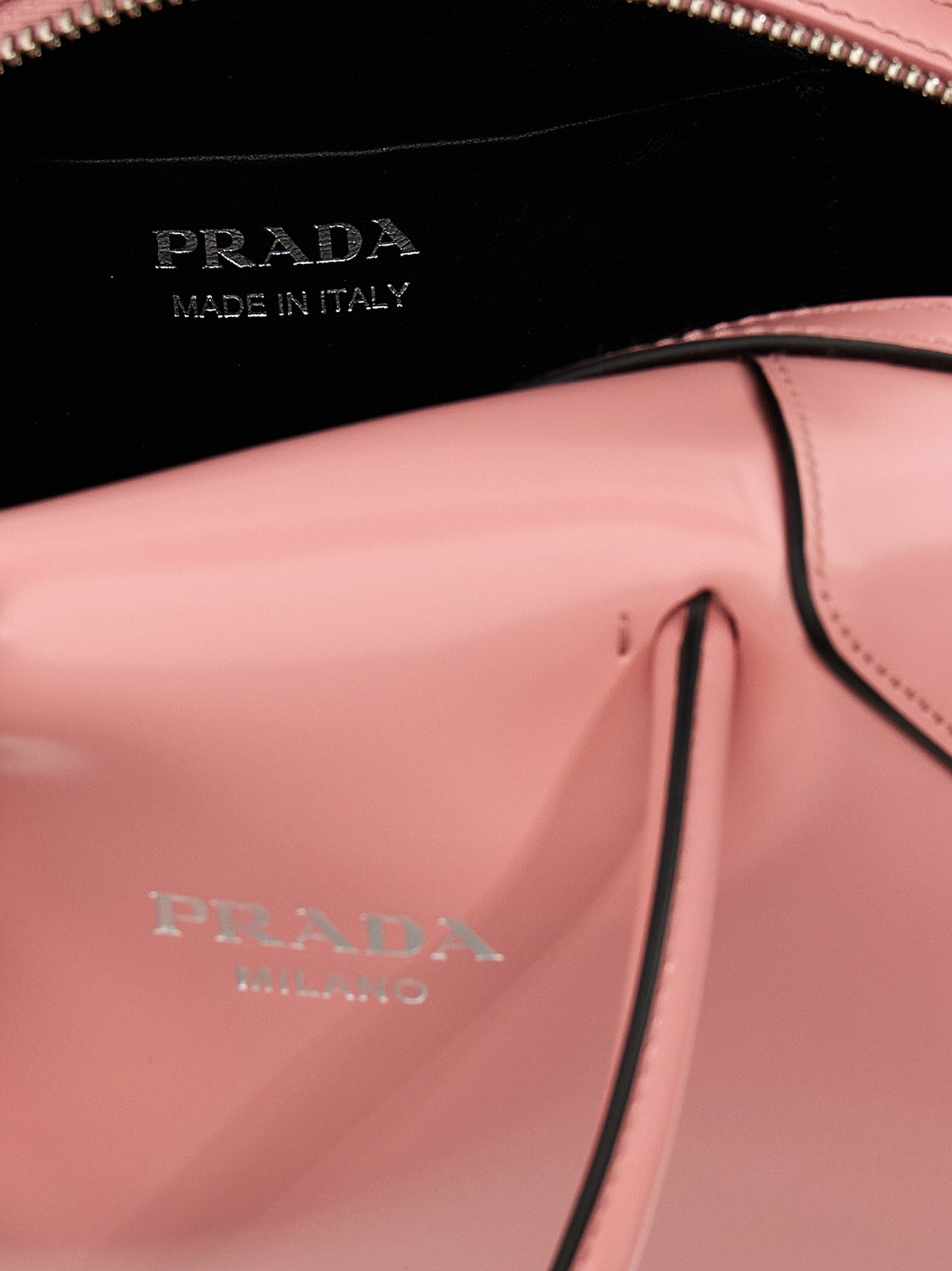 Supernova’ leather handbag with zip closure, front logo print, double handle, awith adjustable and removable shoulder strap.