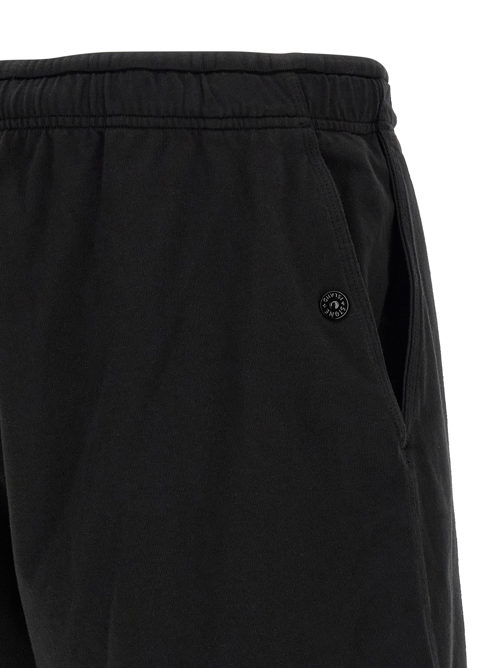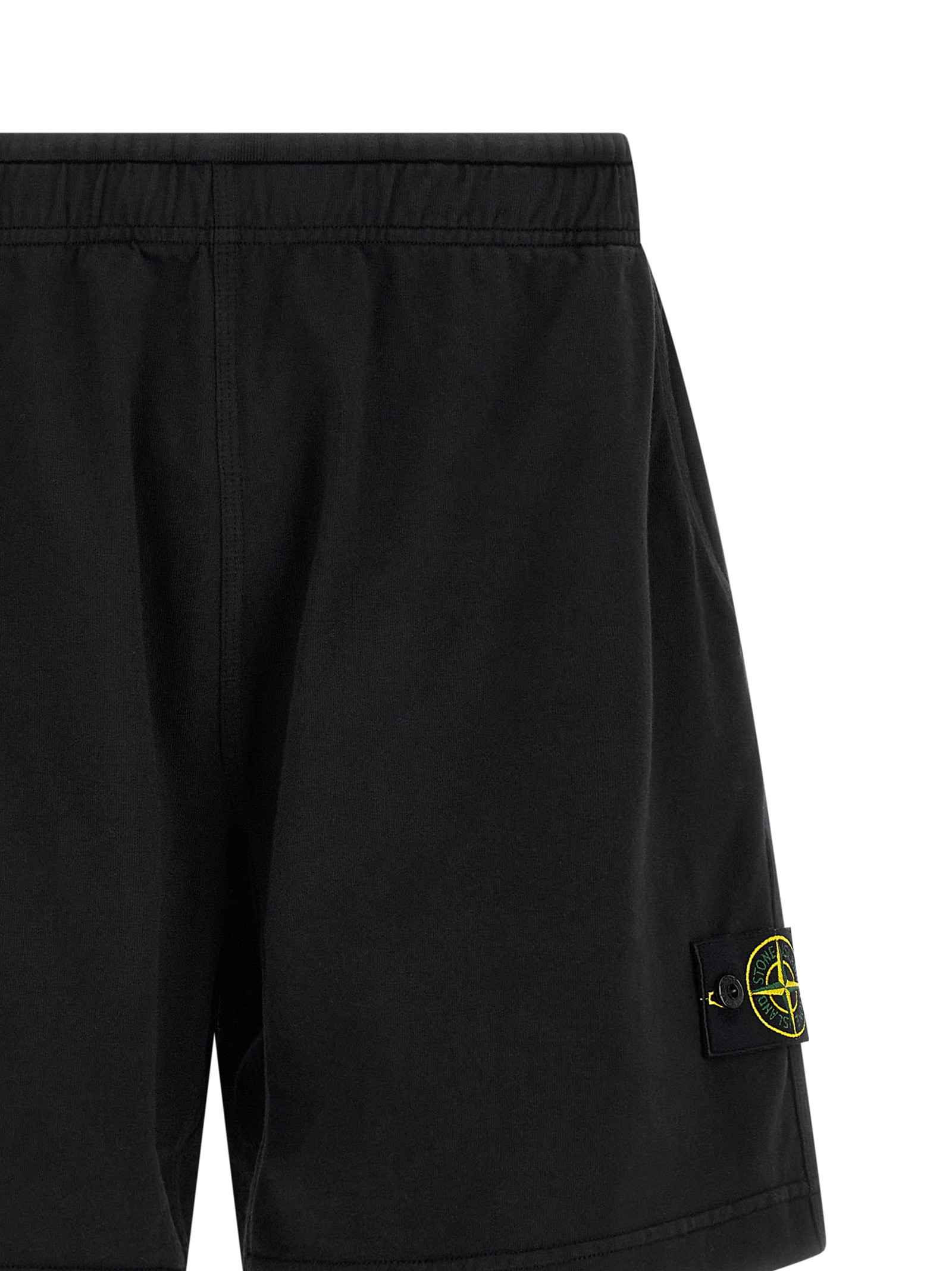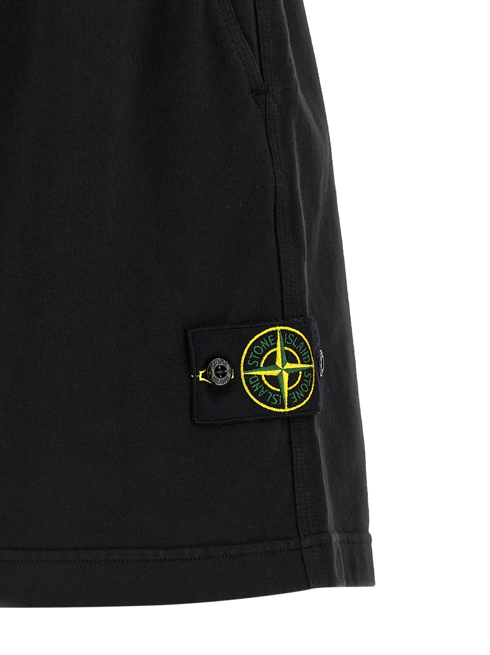 Bermuda shorts in brushed cotton sweatshirt, elastic waistband with adjustable drawstring, side pockets badge with side logo appliqué.