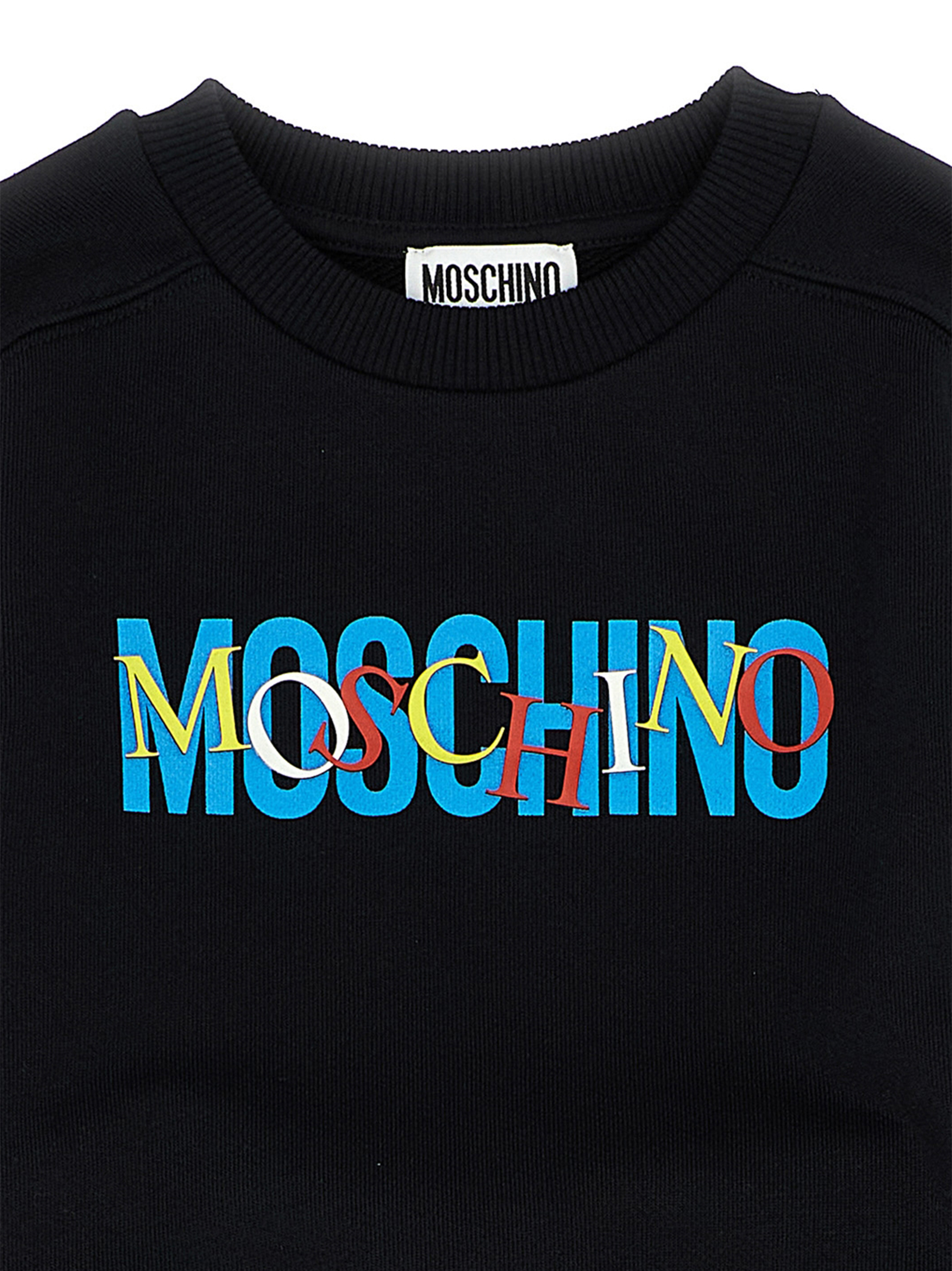 Fleece cotton suit with front logo print consisting of crewneck sweatshirt, long sleeves with cuffs and joggers with elastic and adjustable drawstring at the waist, pockets, ankle cuffs.