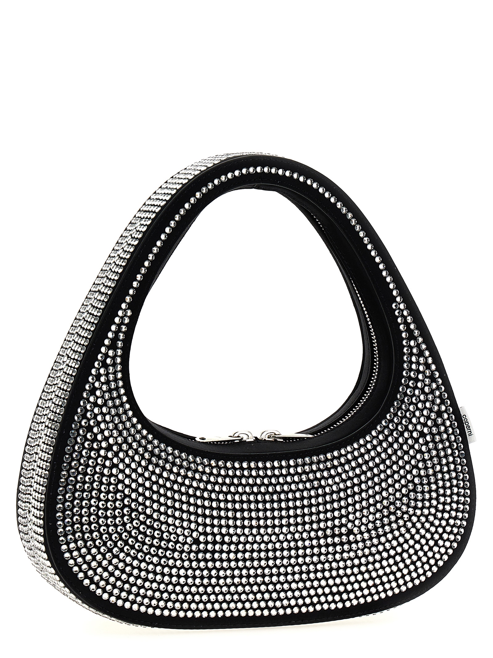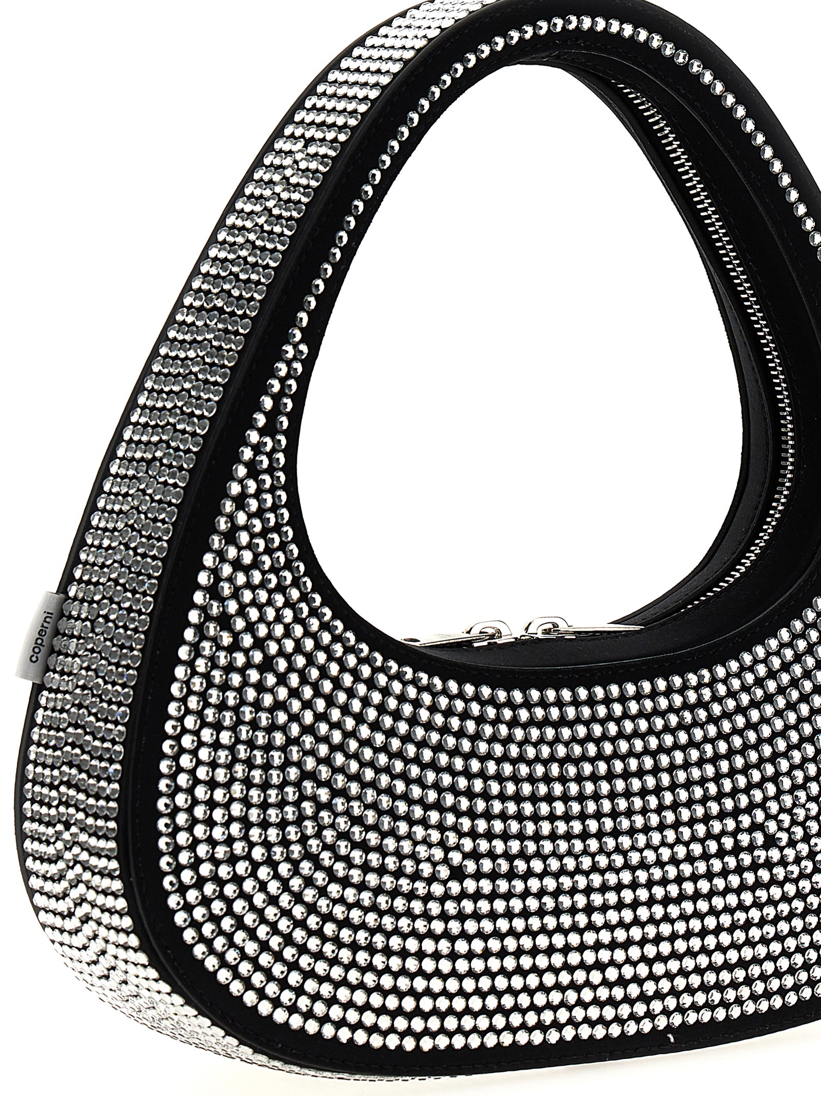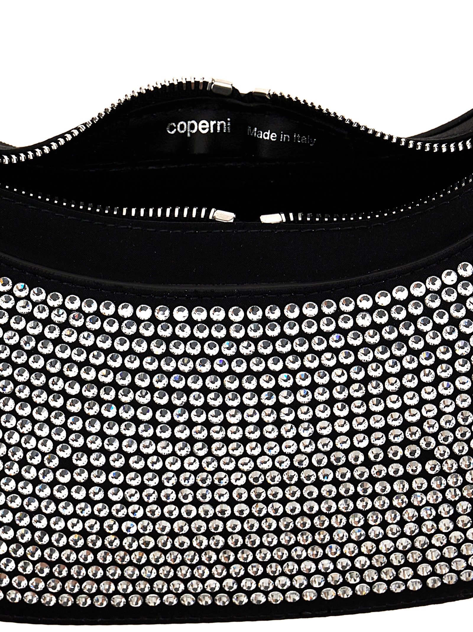 ‘Swipe’ satin handbag covered with crystals, leather details, zip closure, zip closure,