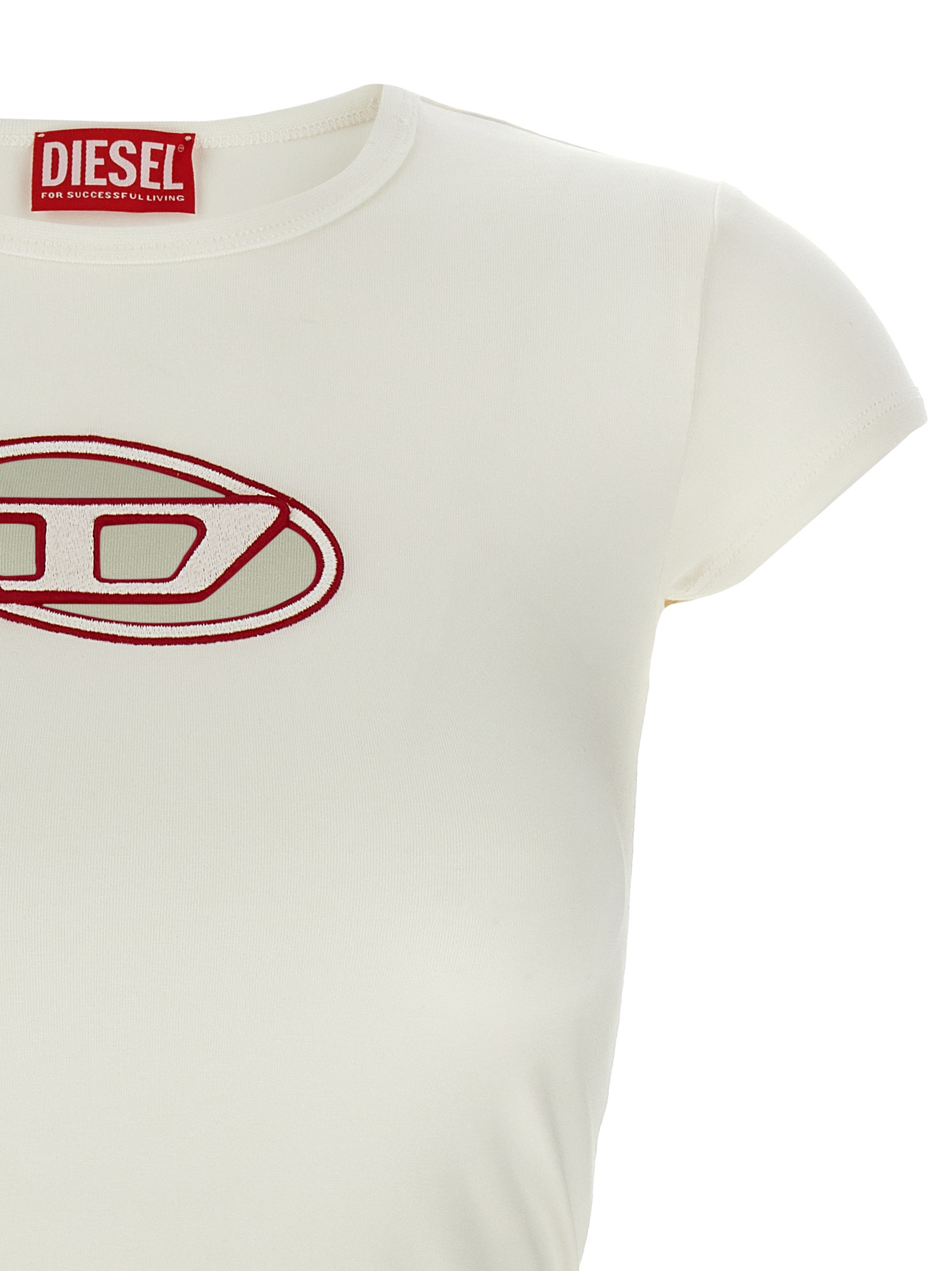 ‘T-Angie’ stretch cotton T-shirt with front cut-out detail with Oval D logo, crew neck, short sleeves.