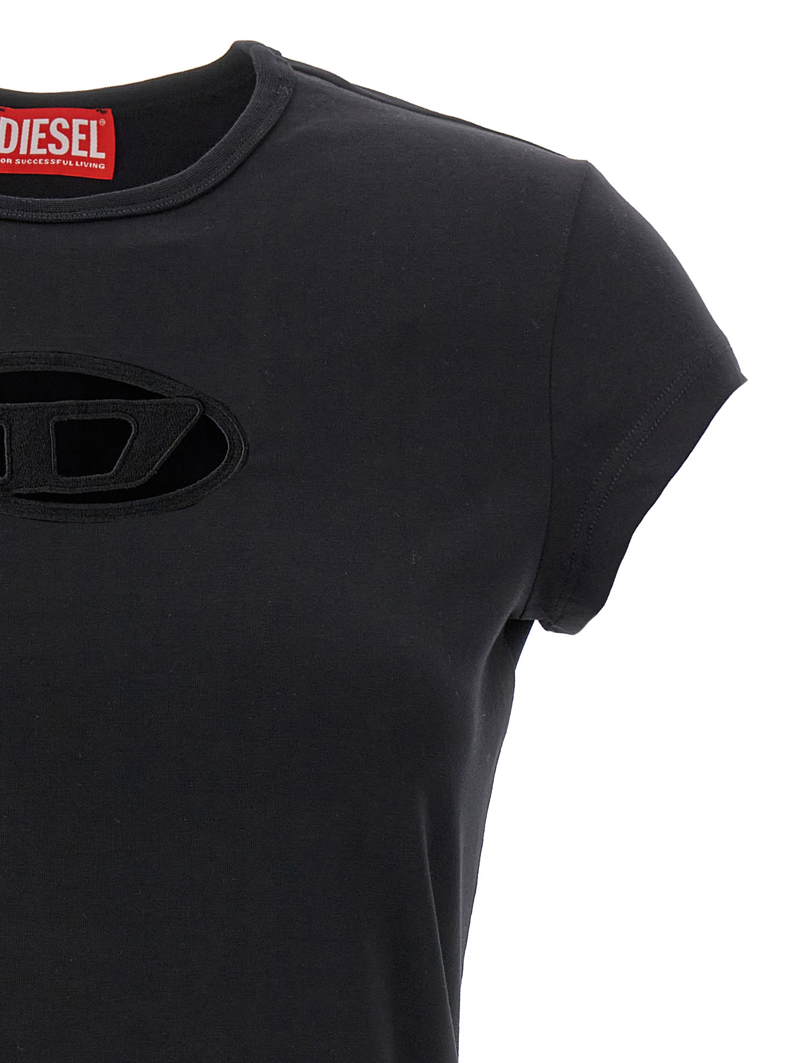 T-Angie crewneck T-shirt in stretch cotton with short sleeves, and front logo with cut-out details.