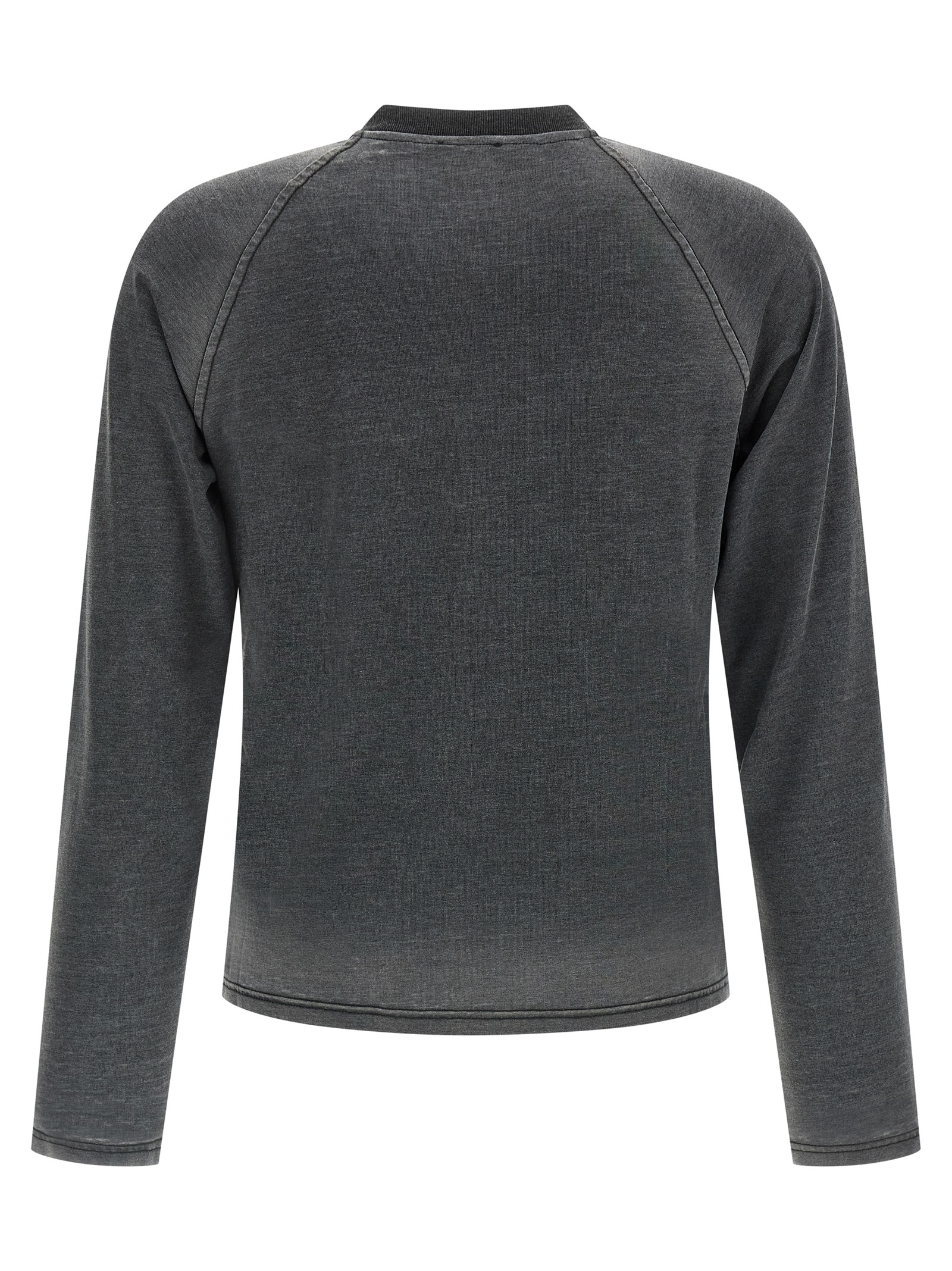 ‘T-Jori-A’ T-shirt in light cotton blend with worn effect, front print, crew neck, long raglan sleeves.