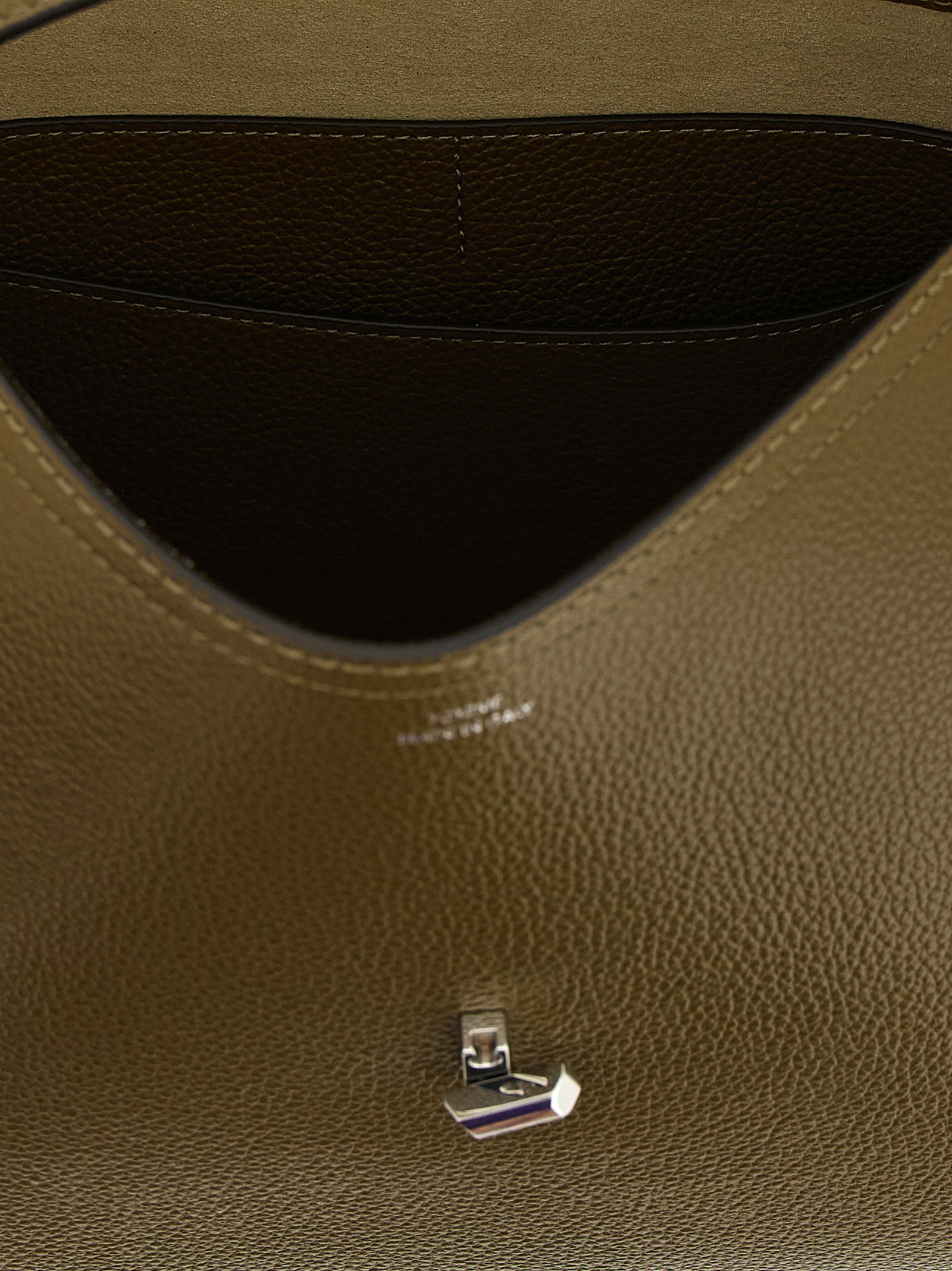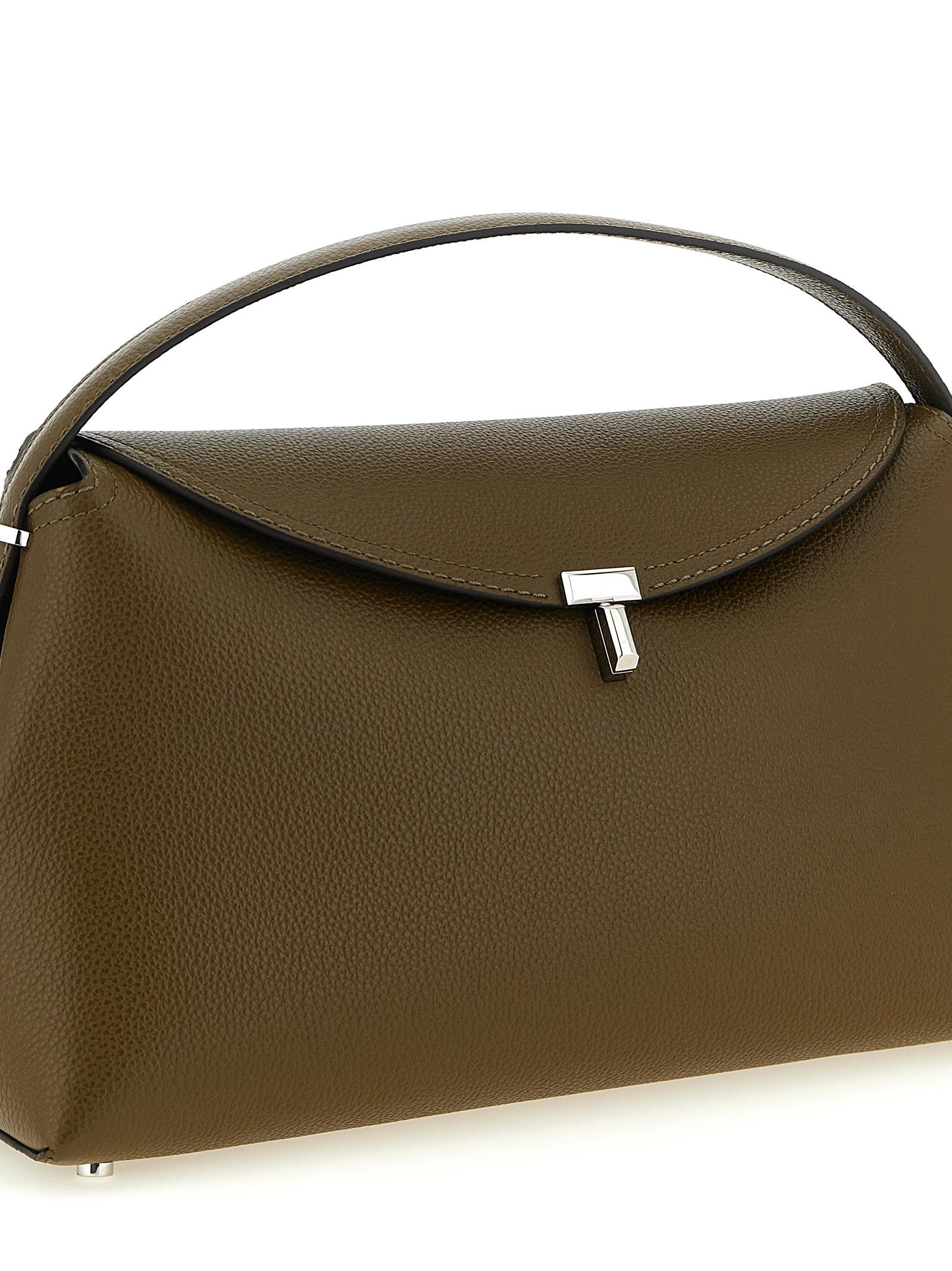 ‘T-Lock’ hammered leather handbag, flap closure with curved flap and front metal turn lock, fixed handle, adjustable and removable shoulder strap.