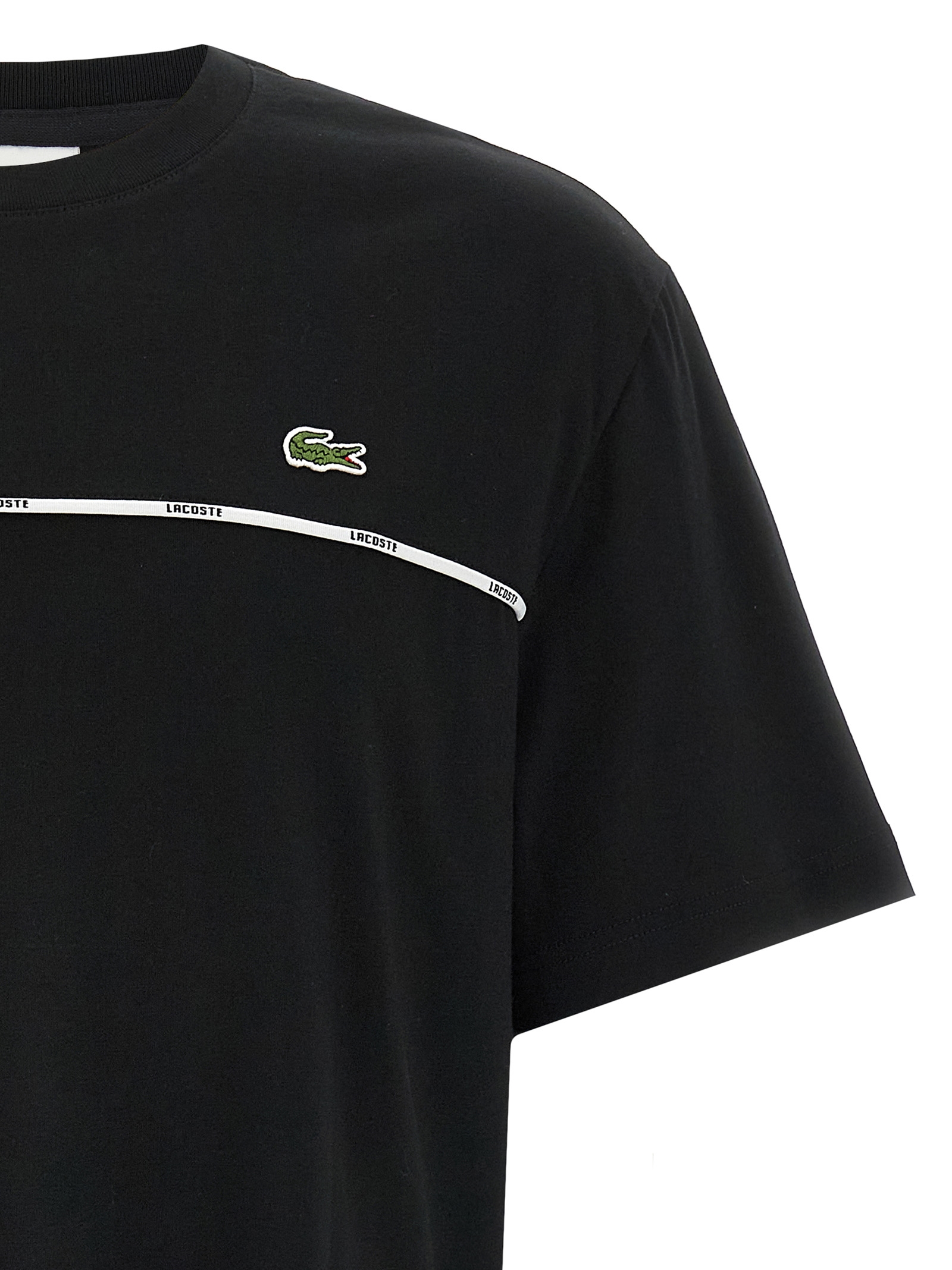 Cotton jersey T-shirt, Lacoste trim and front logo patch, crew neck, short sleeves.