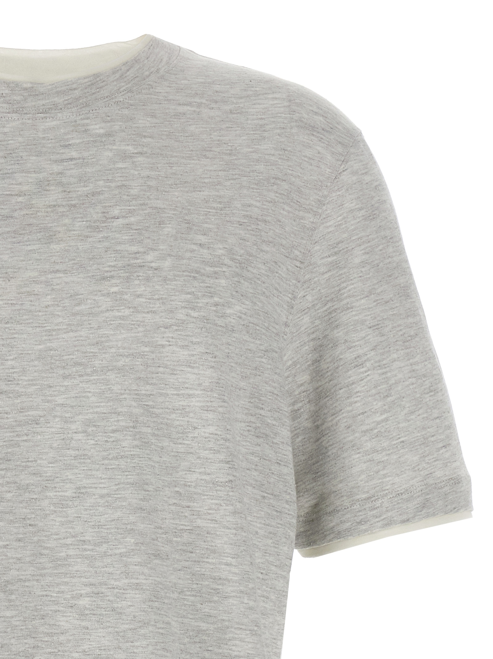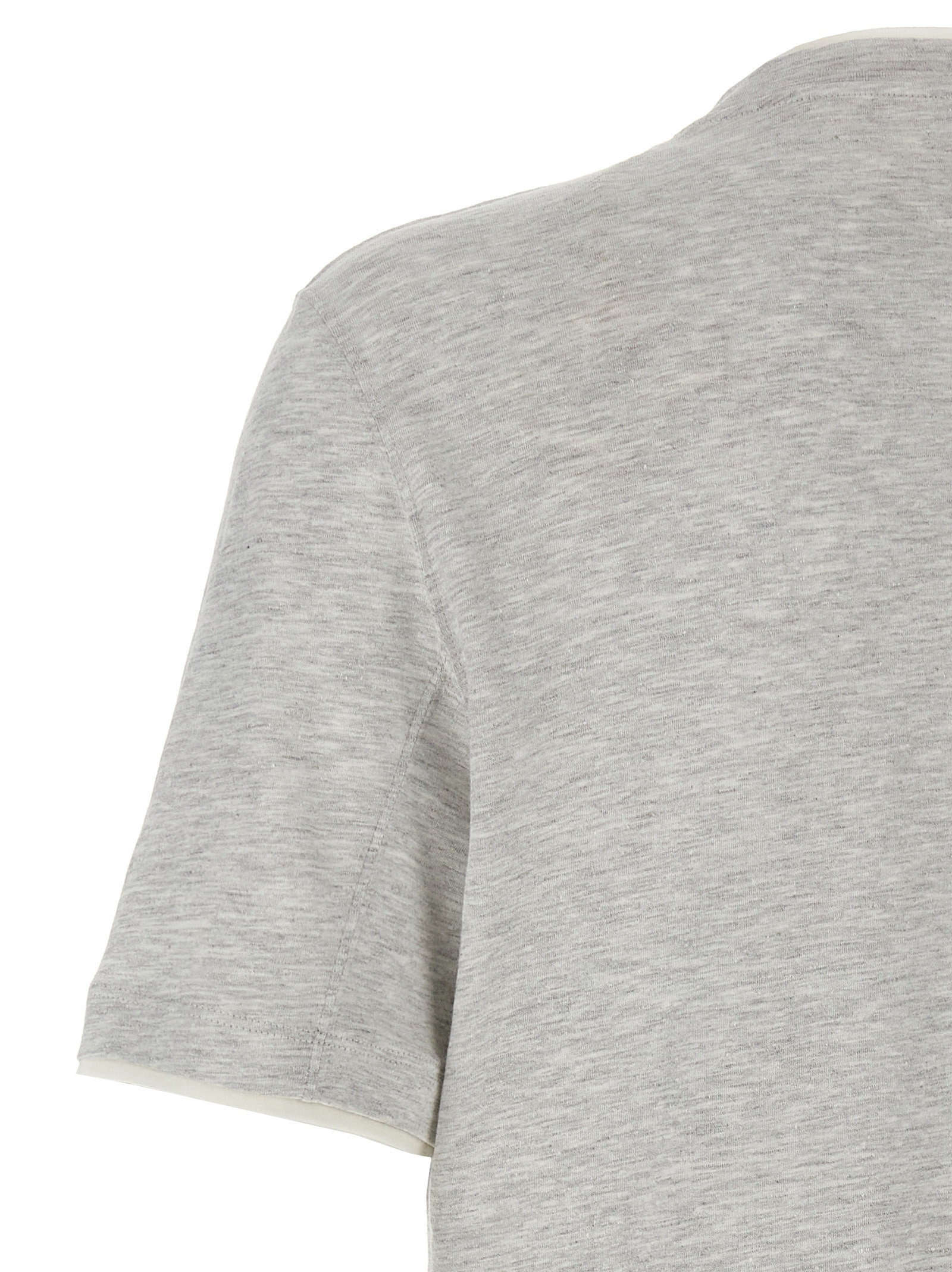 T-shirt in linen and cotton blend with contrasting Faux-Layering, crewneck, and short sleeves.