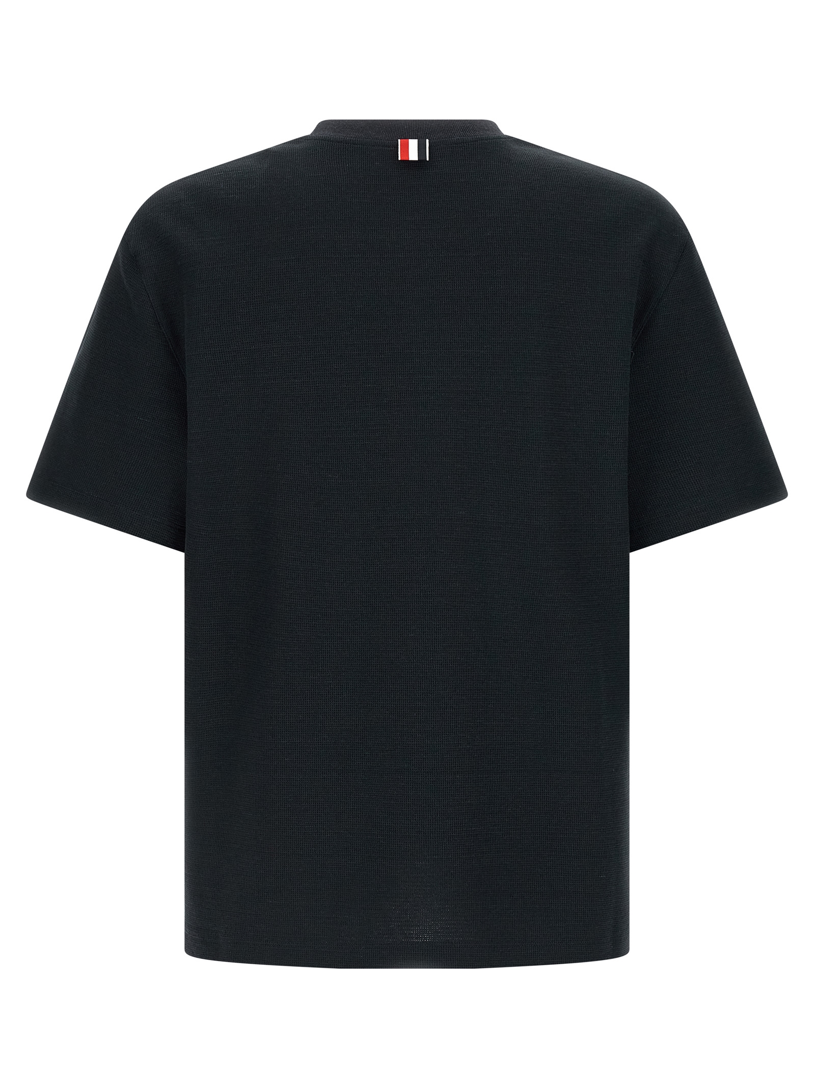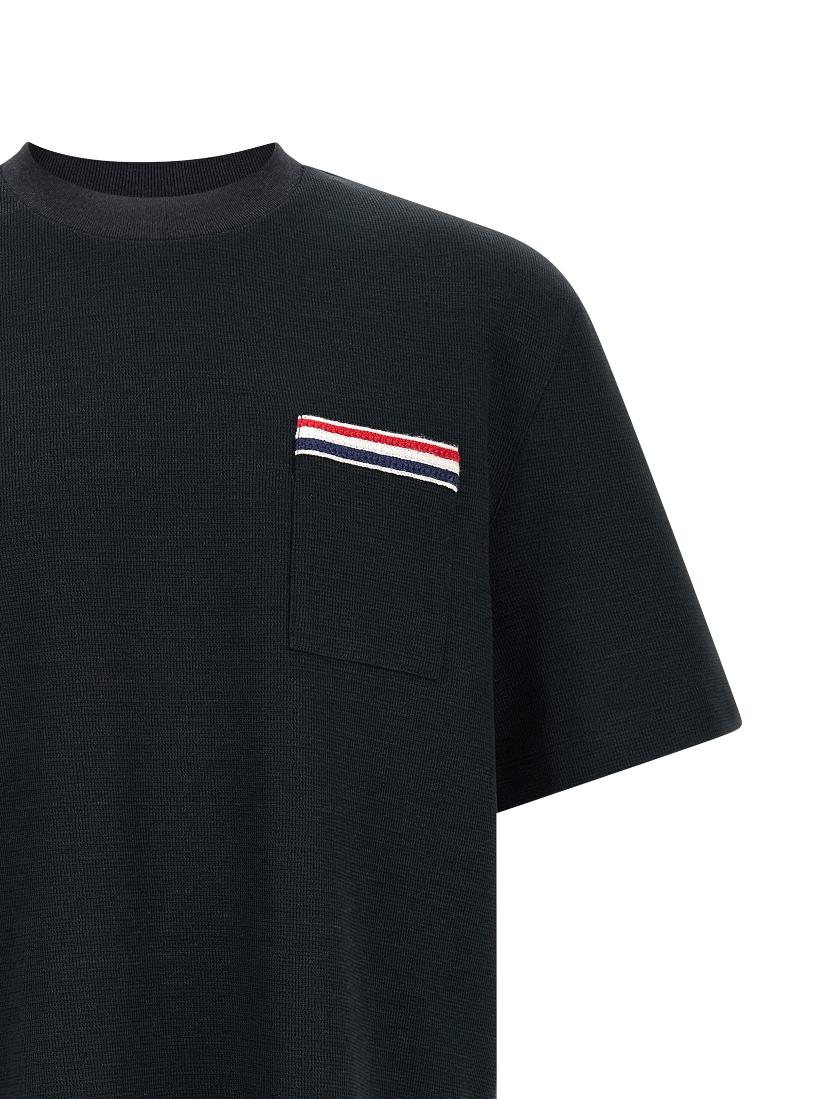 Honeycomb cotton and linen blend T-shirt, RWB embroidered pocket, crewneck, short sleeves, front logo patch, side split with buttons and RWB grosgrain ribbon.