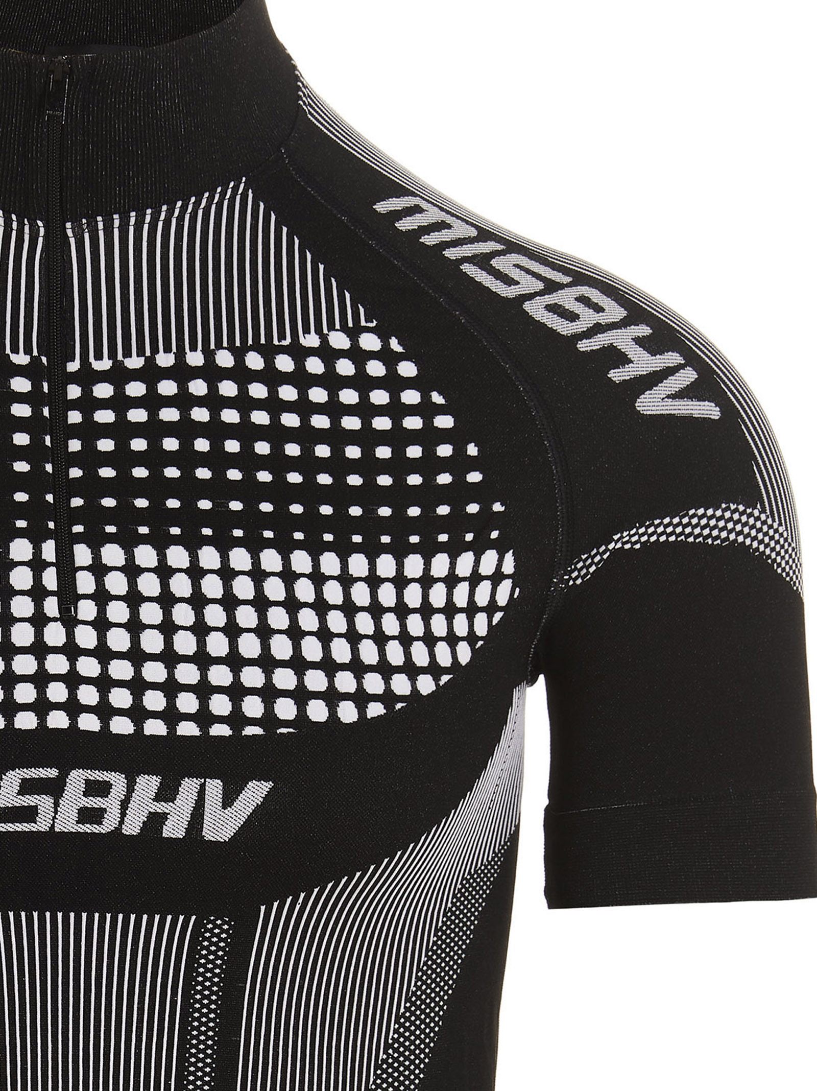 Sport Europa’ T-shirt in stretch tech fabric, with front logo, a high collar, half zip and short sleeves.