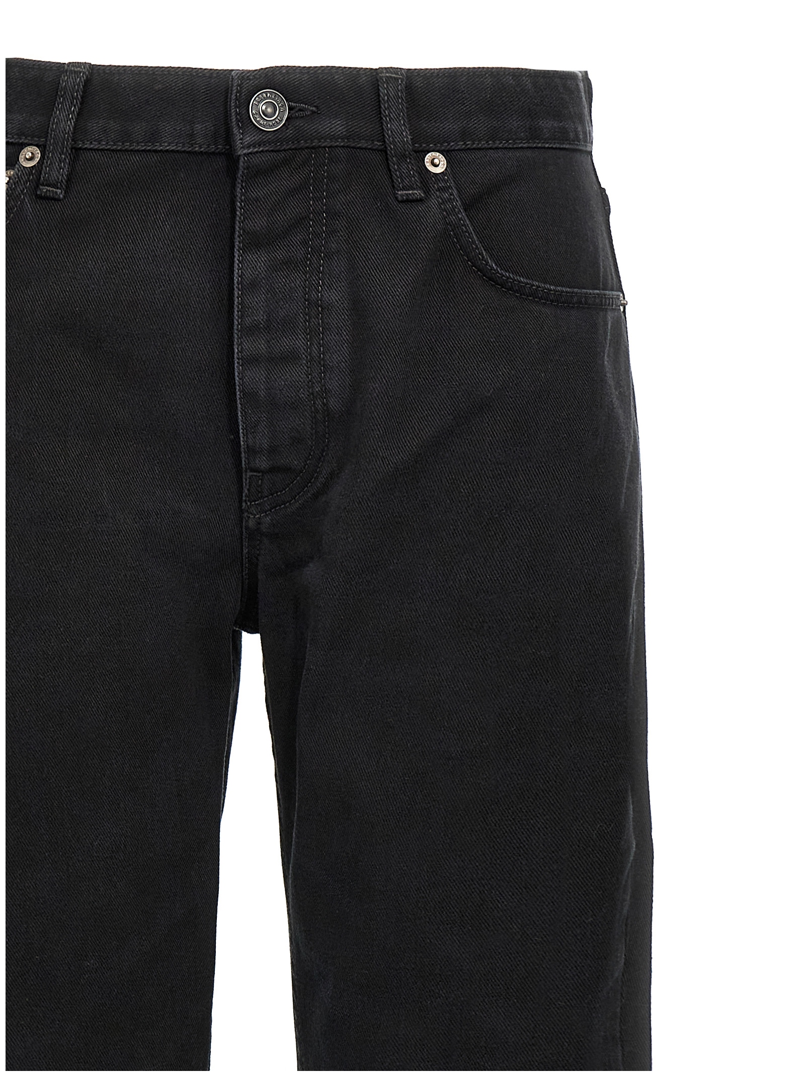 ‘Taglio Dritto’ mid-waist jeans in Italian twisted denim with straight leg, front button closure, five pockets, and leather logo label at the back.