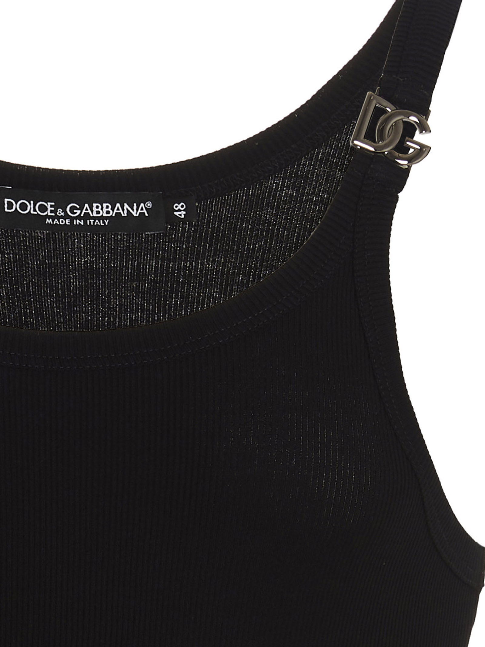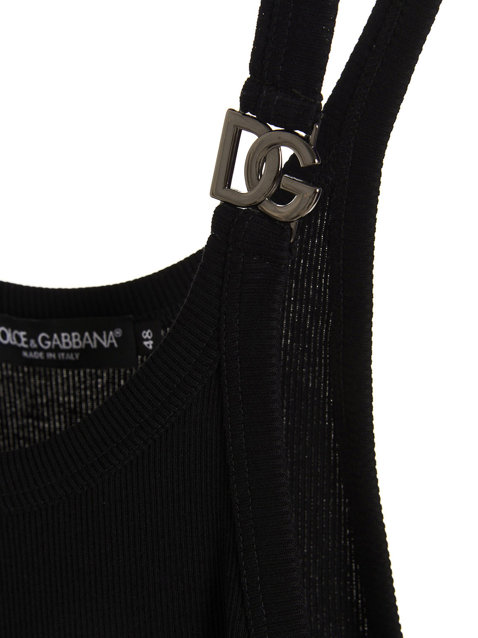 Black Sicily’ ribbed cotton tank top with metal logo on the shoulder strap, and a round neckline.