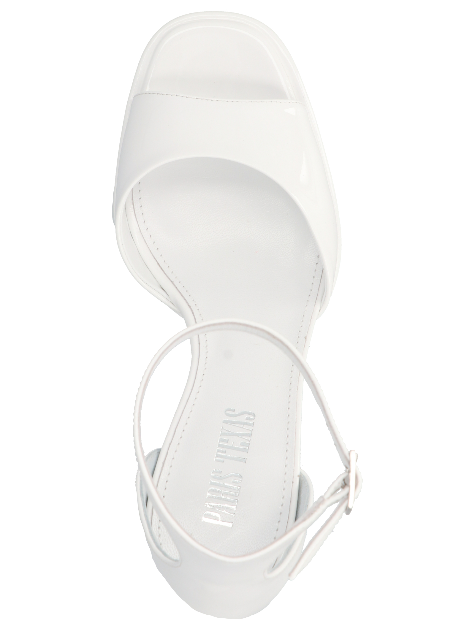 Tatiana’ patent leather sandals with nkle straps, platformer and chunky heel.