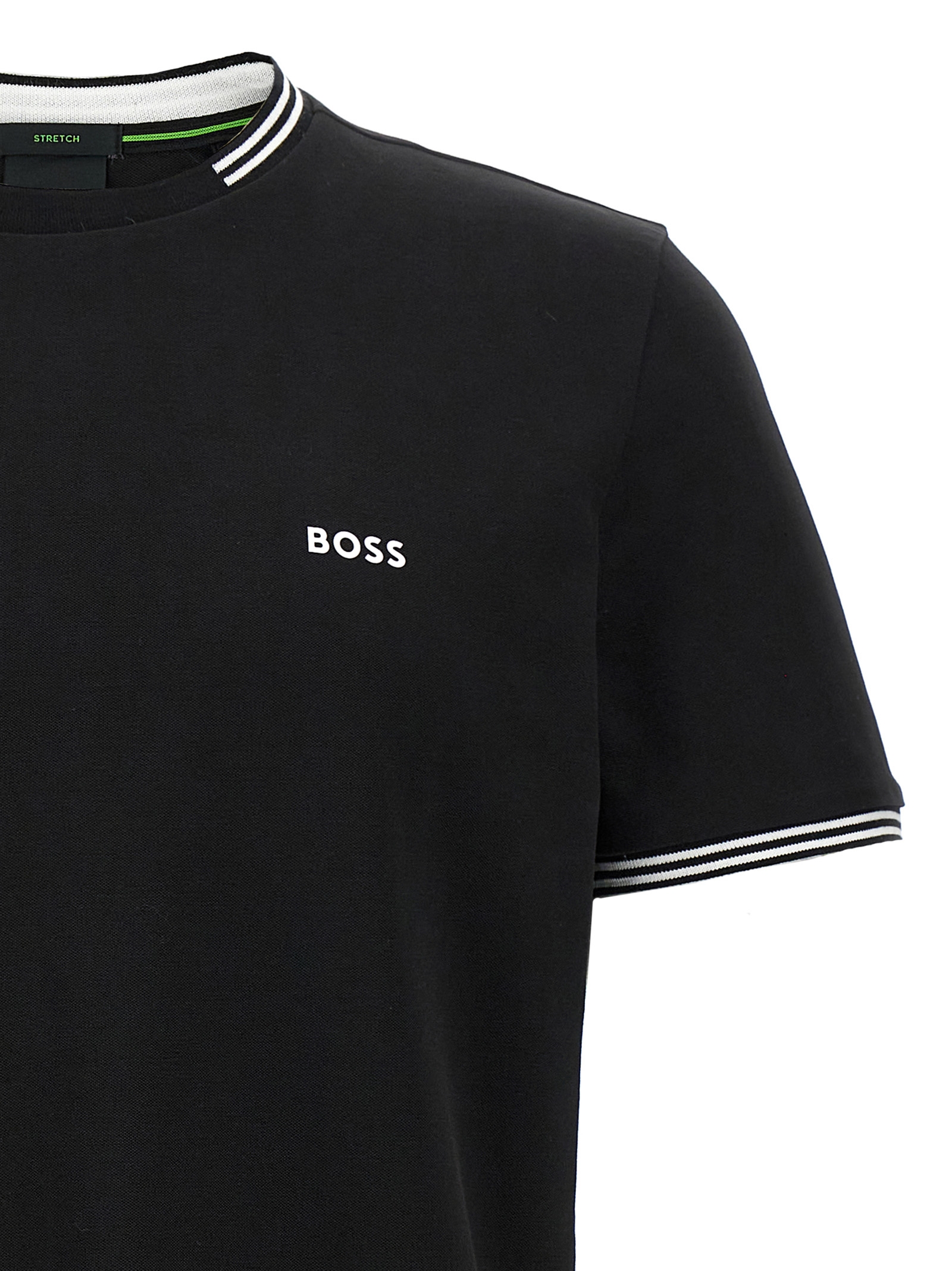 ‘Taul’ stretch cotton piqué t-shirt, crew neck and short sleeves with contrast stripes.