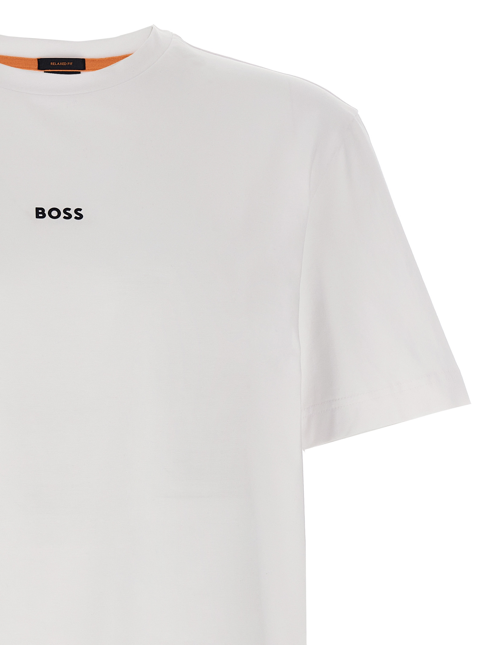 ‘TChup’ stretch cotton T-shirt with front embossed logo print, crew neck, short sleeves.