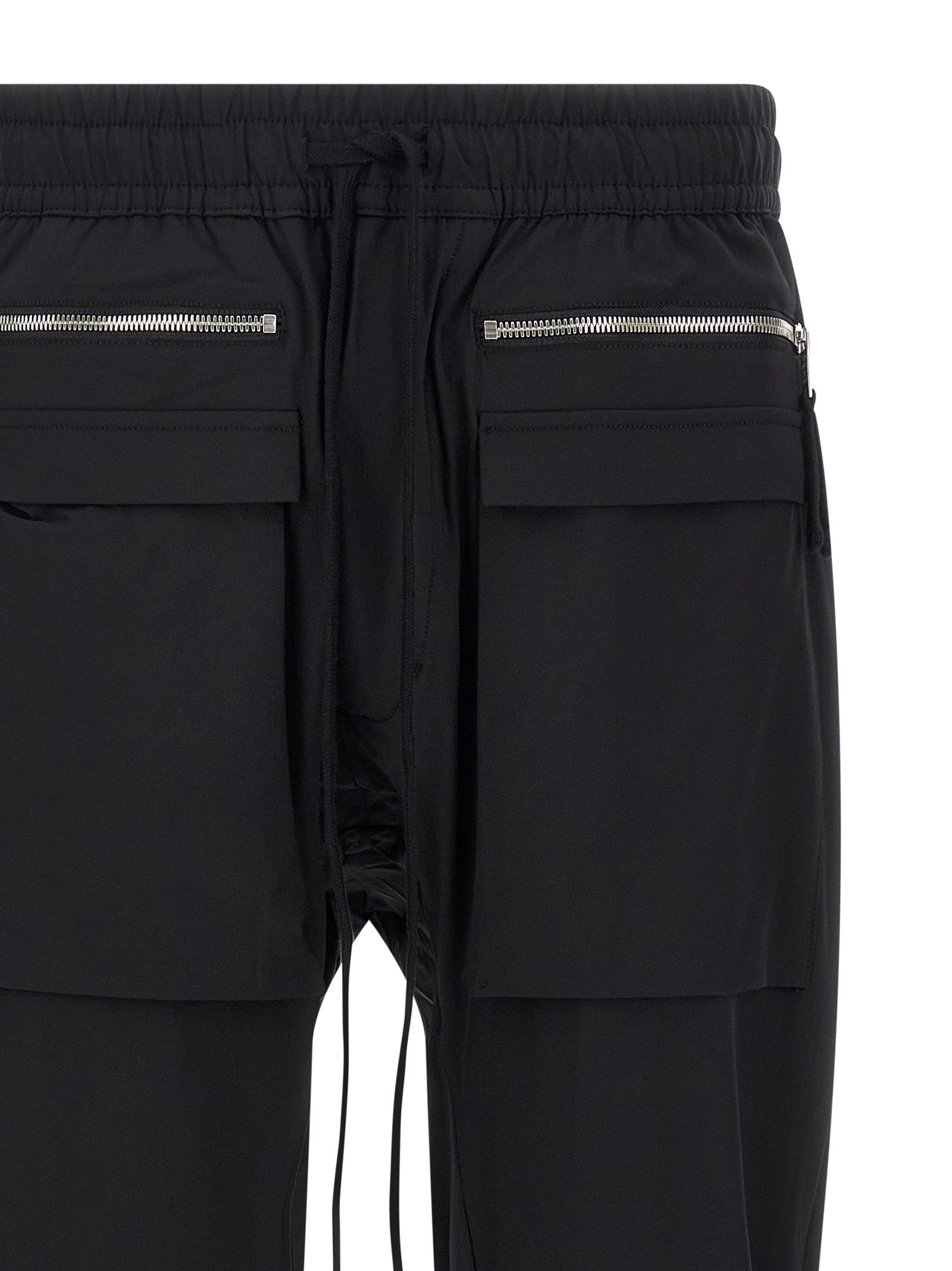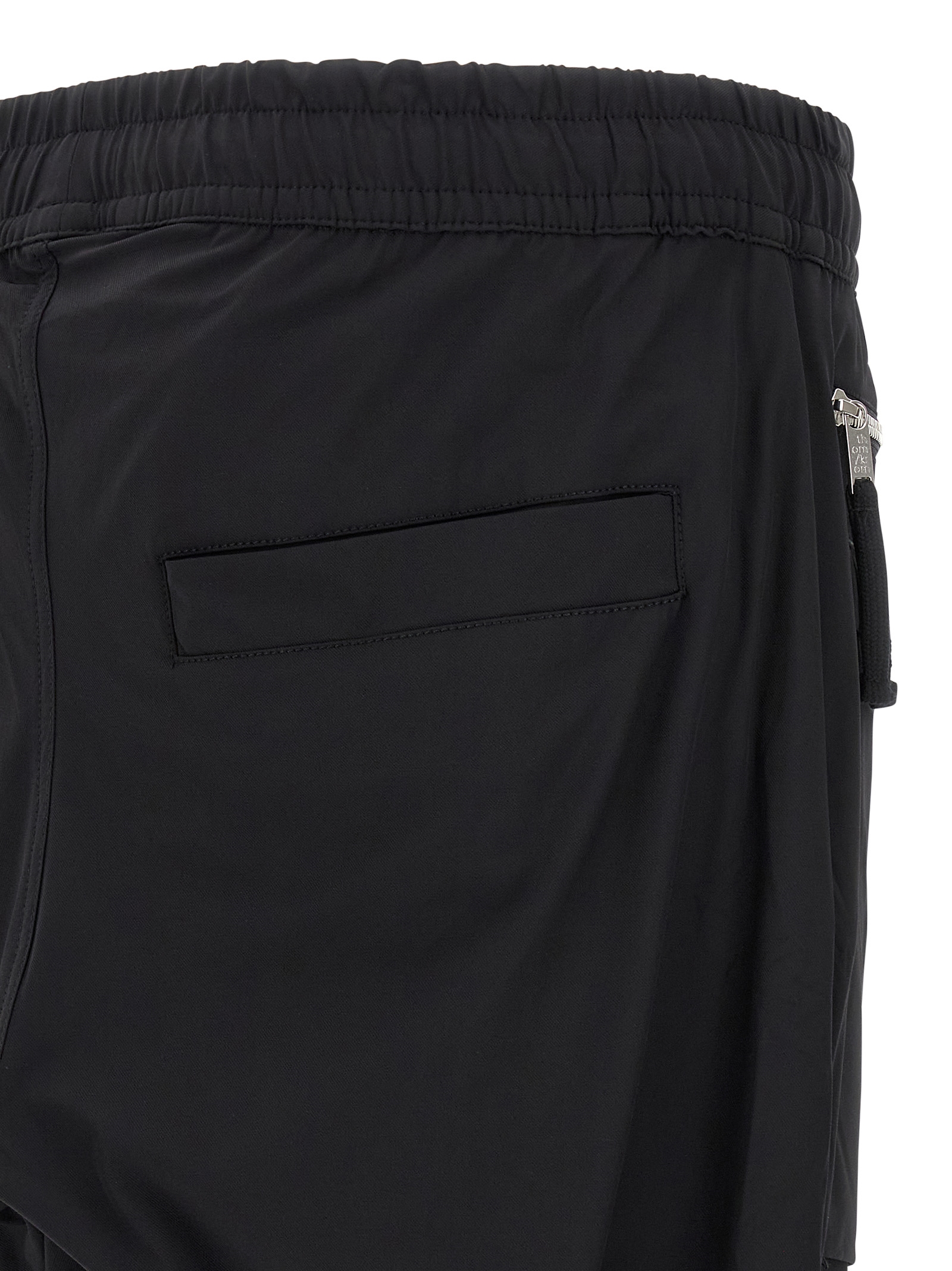 Joggers in technical fabric, elastic with adjustable drawstring at the waist, flap with buttons, zipped pockets, straight leg, elastic cuffs at the ankle.