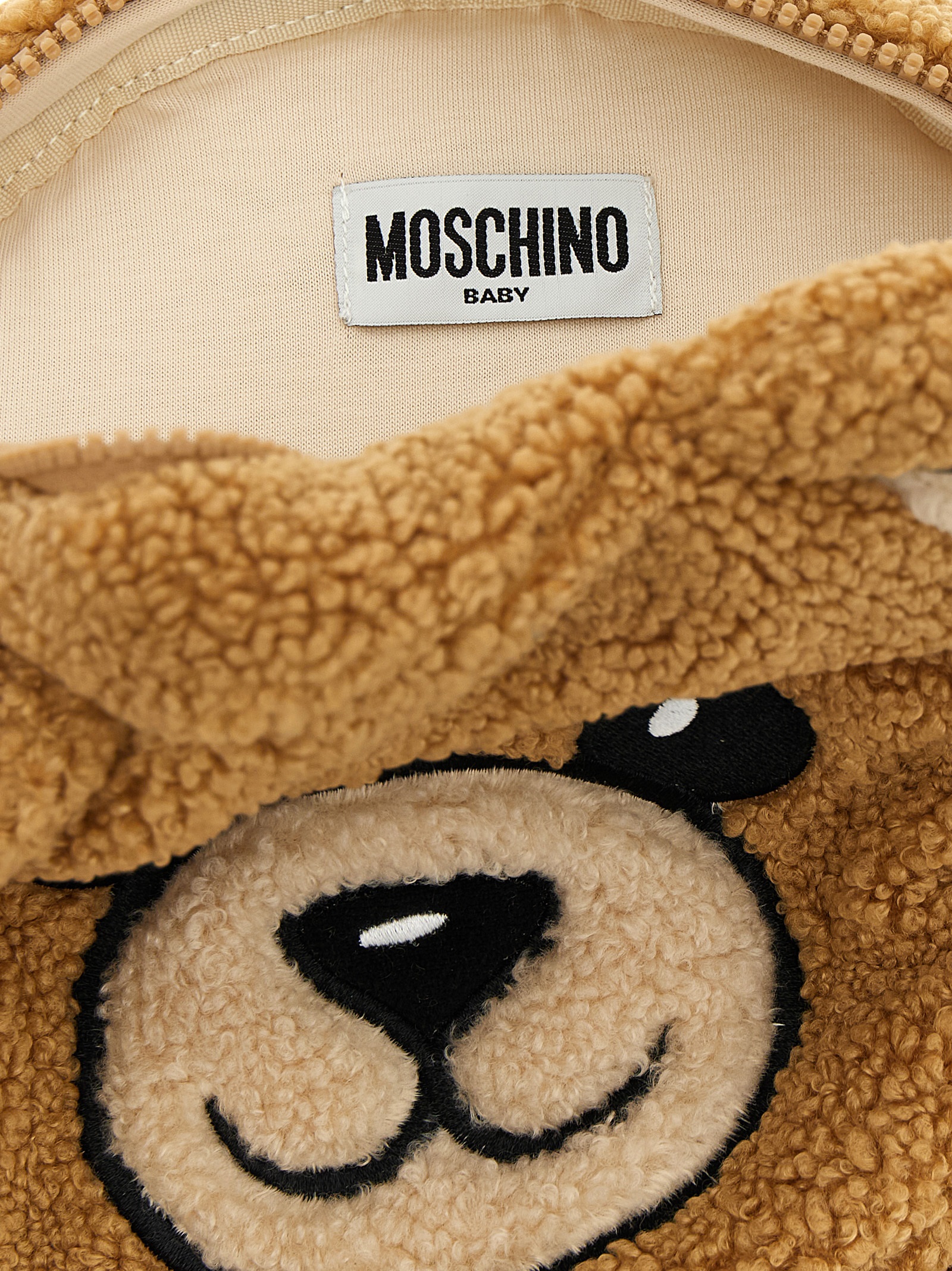 ‘Teddy Bear’ backpack in teddy-effect fabric with top zip closure, fixed handle, adjustable shoulder straps.