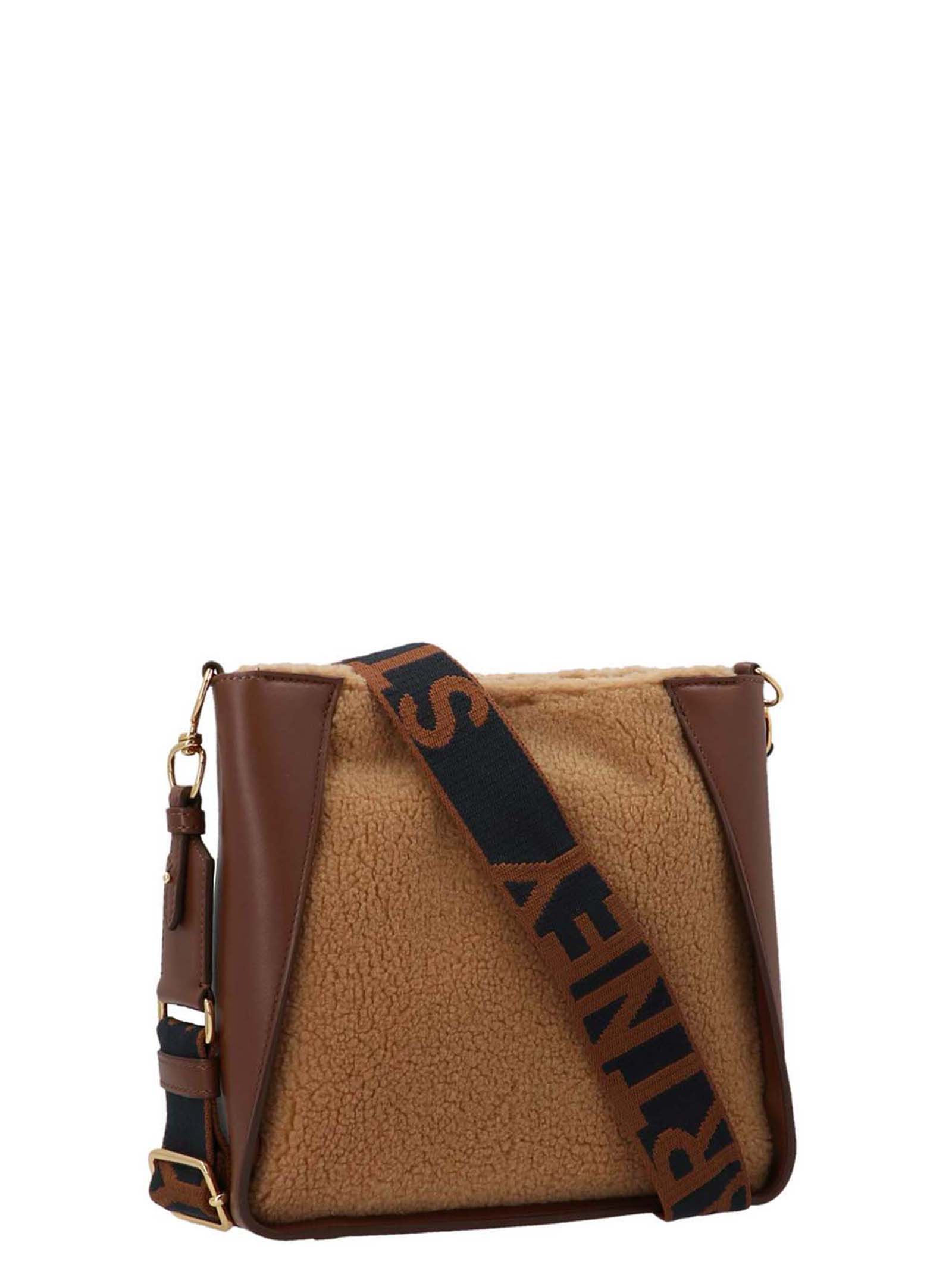‘Teddy’ faux fur crossbody bag with logo, and adjustable and removable fabric tape shoulder strap.