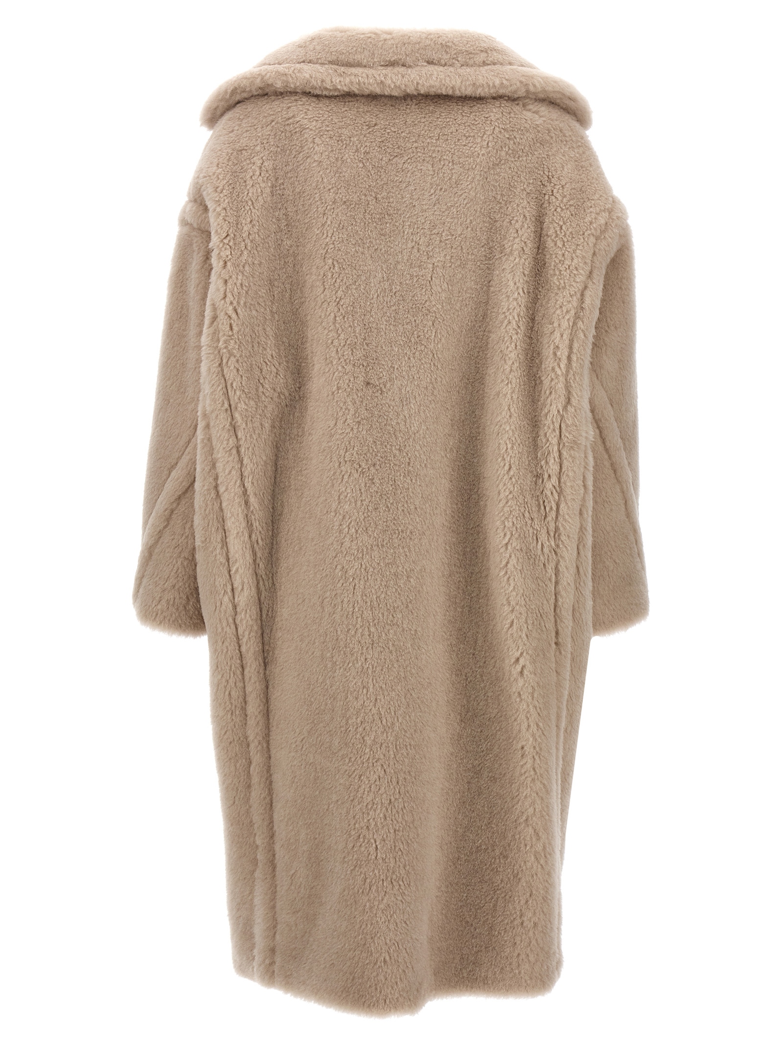 ‘Tedgirl – Teddy Bear Icon’ faux fur-effect alpaca and wool coat, double-breasted style with front horn button closure, lapel collar, pockets, long sleeves with dropped shoulders, monogram viscose lining.