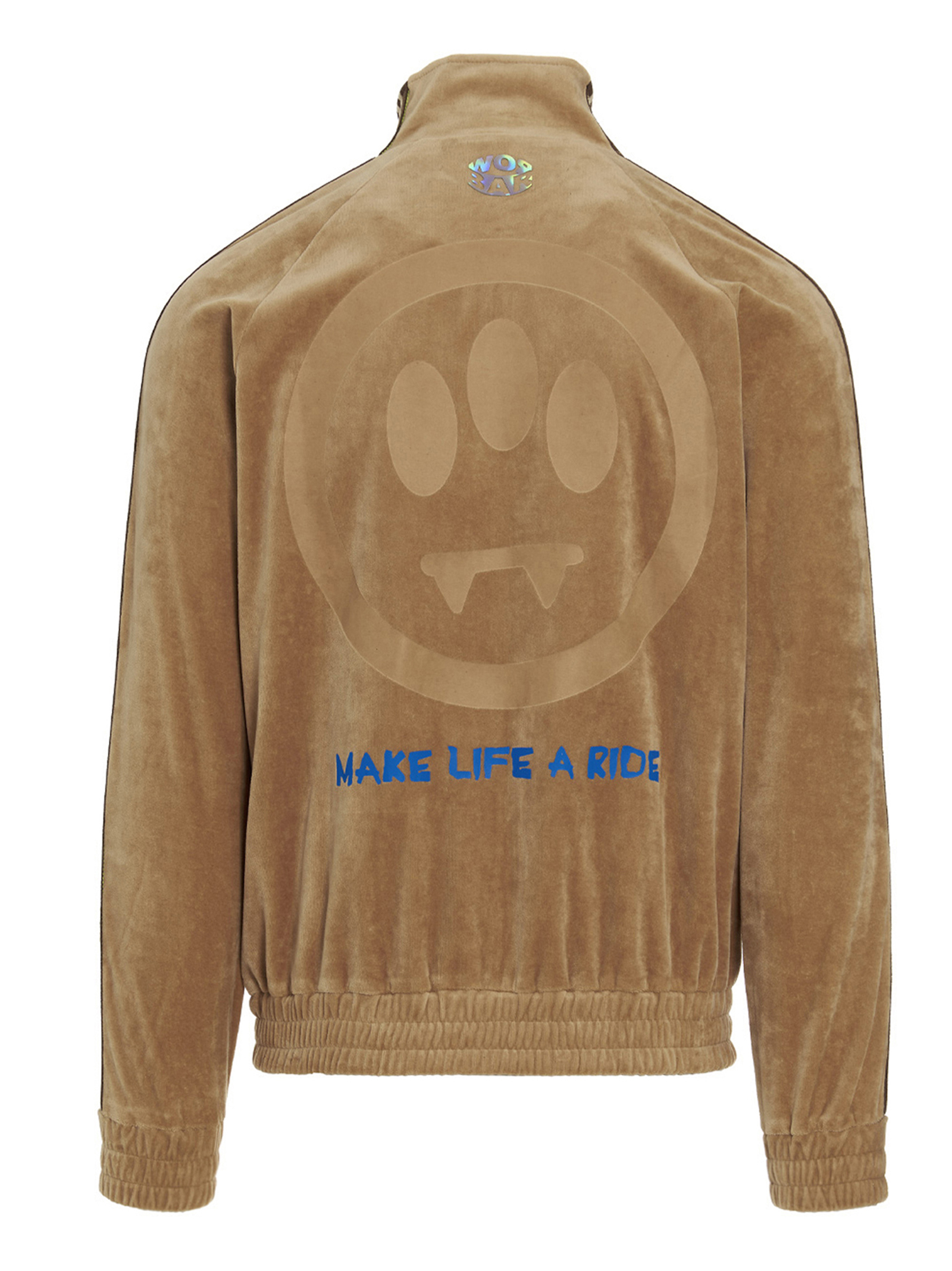 ‘Terry’ velvet sweatshirt with a zip featuring contrasting bands and a logo print at the front and back.