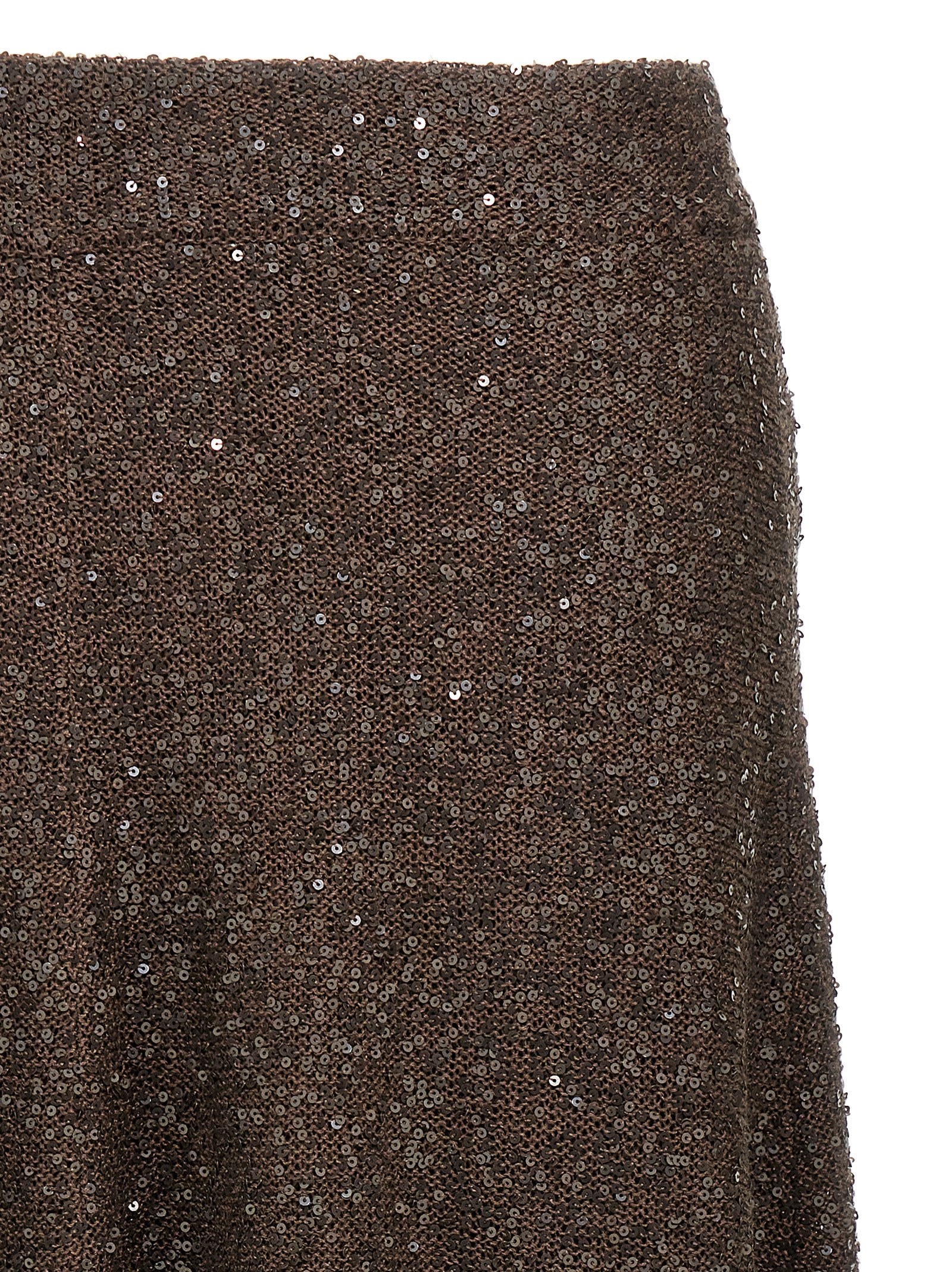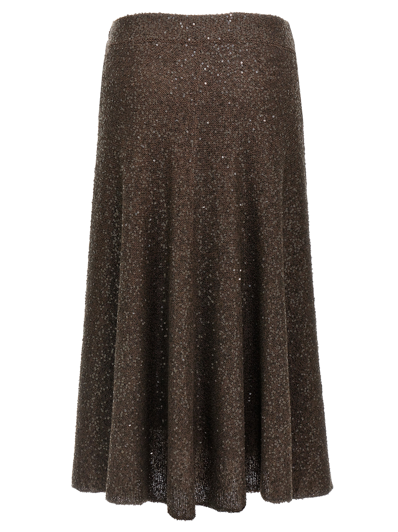 Dazzling knit midi skirt Linen, cashmere and silk texture with all-over sequins, elastic waistband, crepe and silk blend lining, flared design.