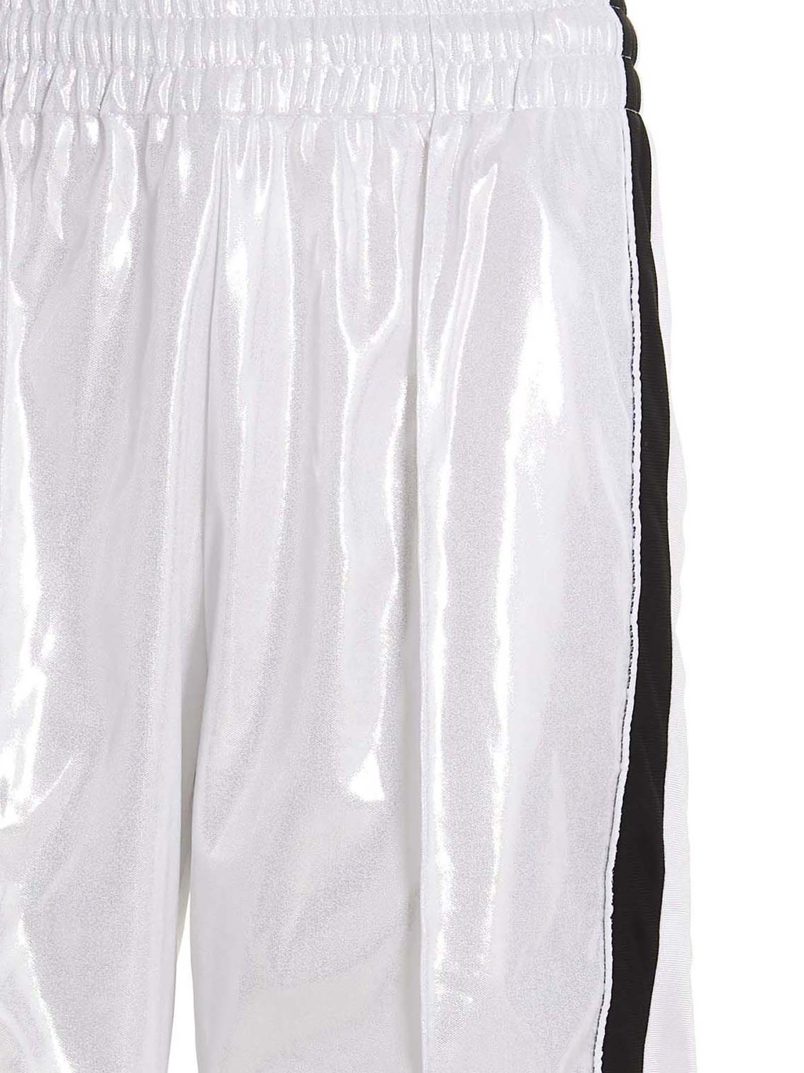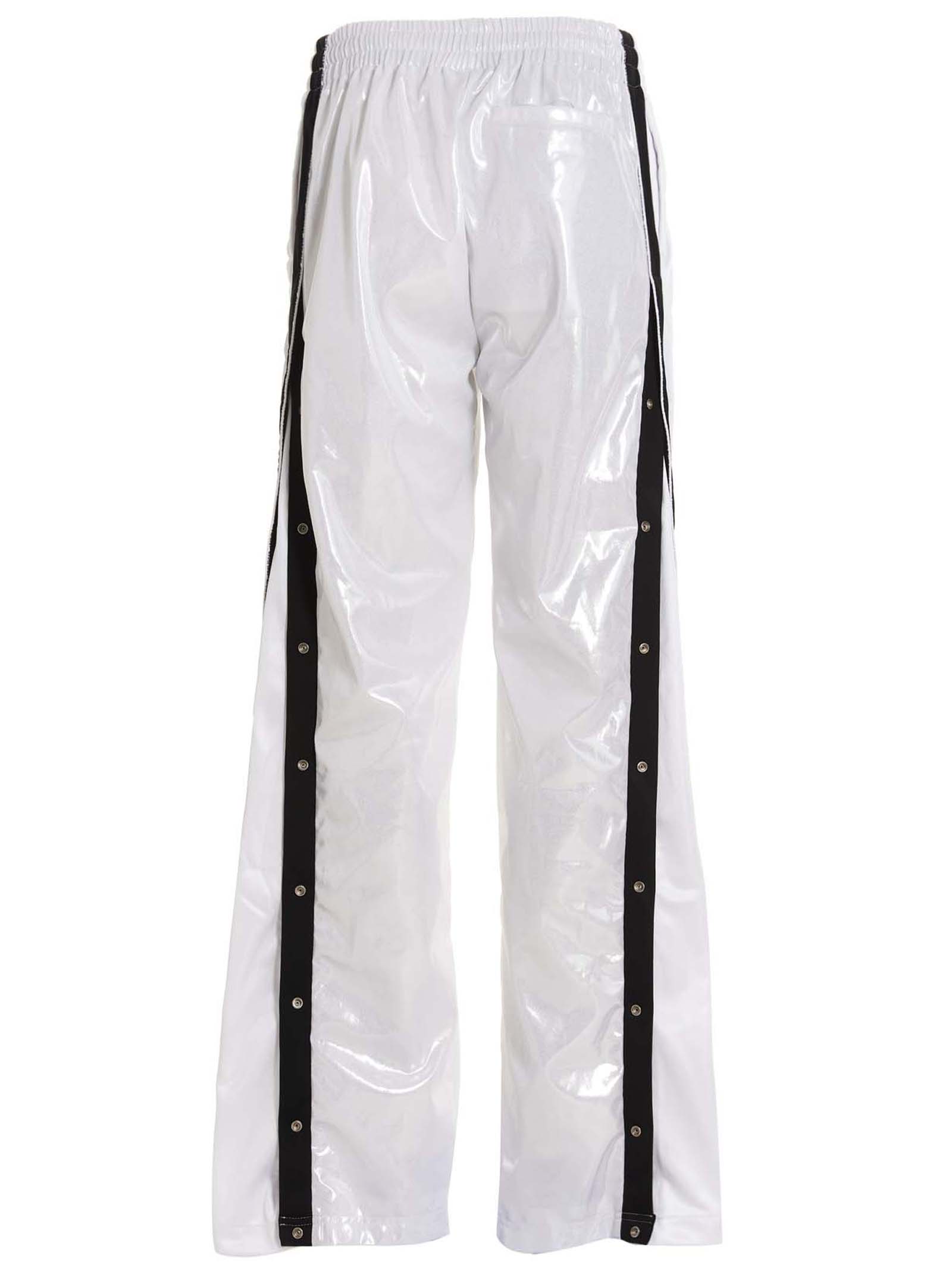 Acetate joggers with laminated fabric, contrast side bands with snap buttons and aelastic waistband.