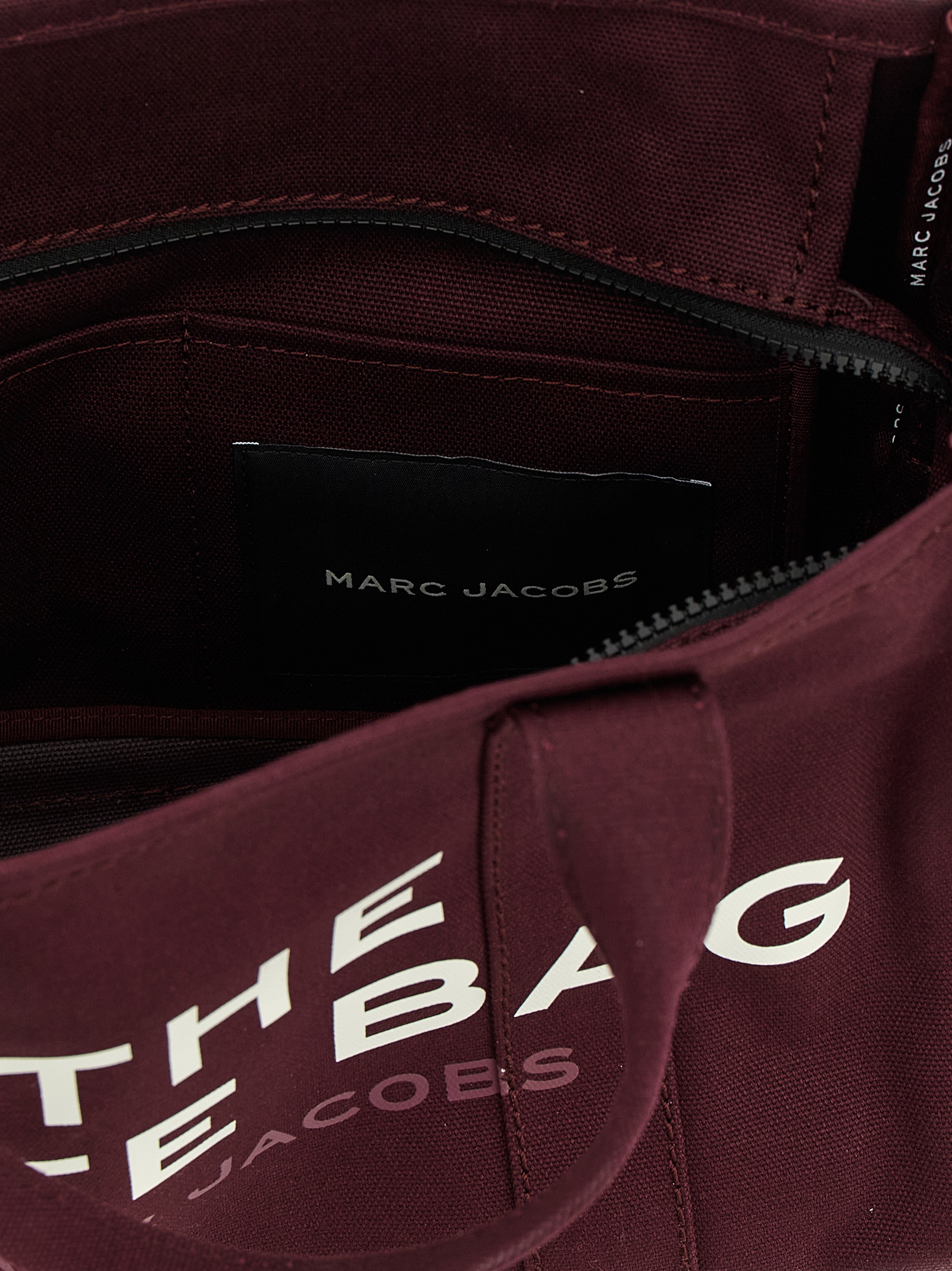 ‘The Canvas Medium Tote’ textured cotton canvas shopping bag with front logo print, double fixed handle, zip closure, adjustable and removable shoulder strap.