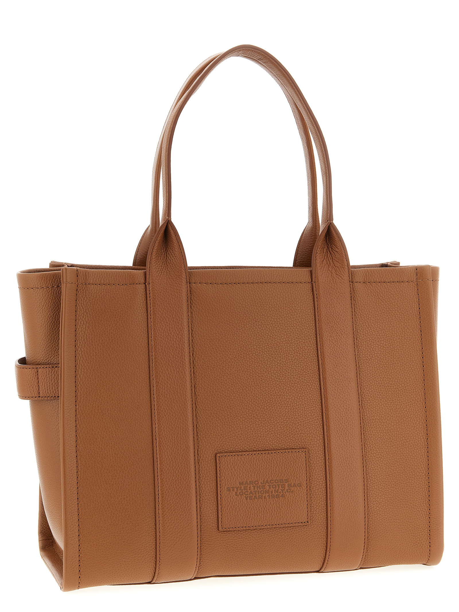 ‘The Leather Large Tote’ full-grain leather shopping bag with front embossed logo, tone-on-tone logo patch at the back, double fixed handle, top zip closure.