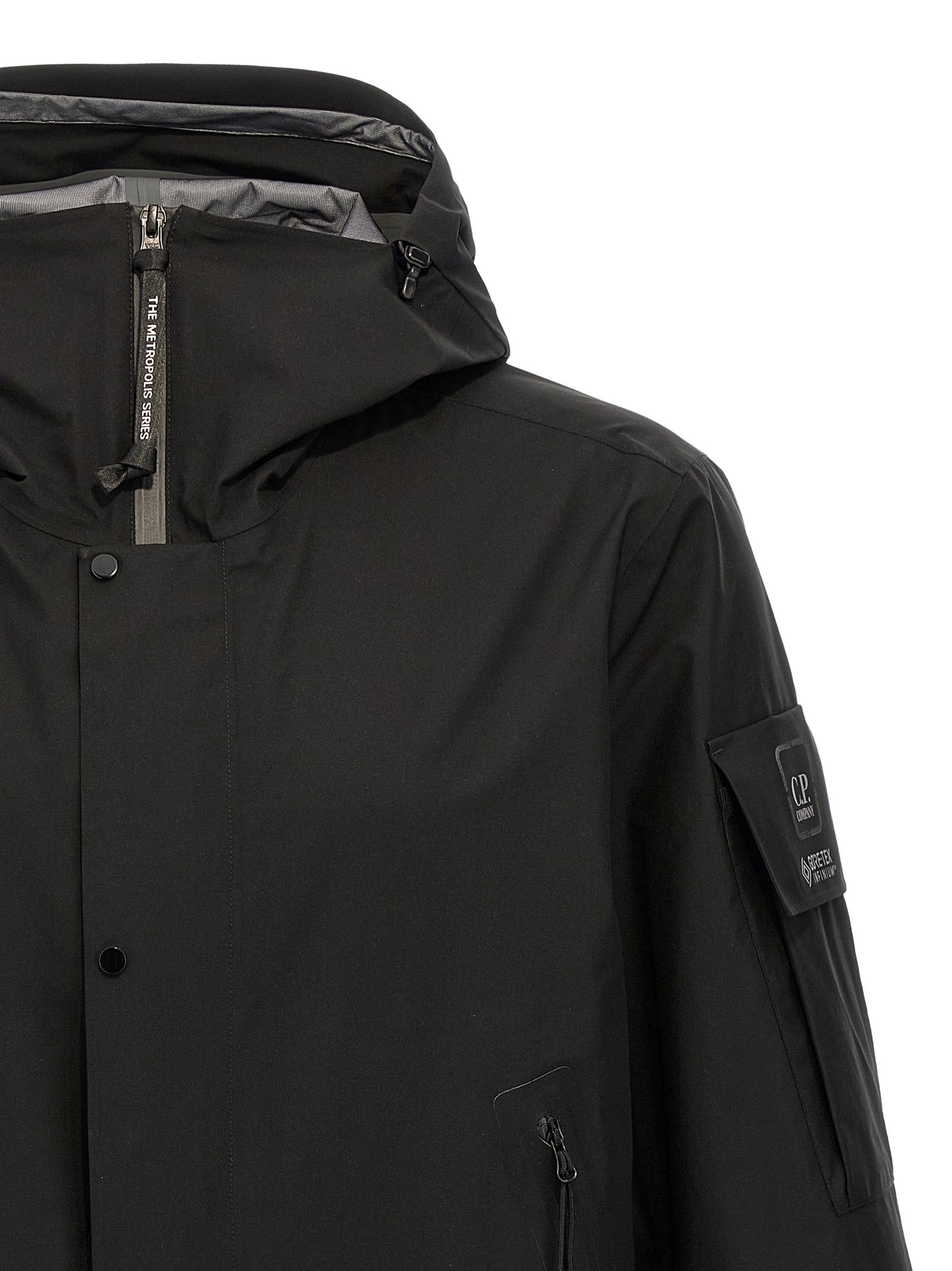 Water-repellent GORE-TEX INFINIUM™ ‘The Metropolis Series’ parka with high neck, hood, zip and snap button closure, adjustable drawstring pockets at the waist, long sleeves with adjustable cuffs and logo print.