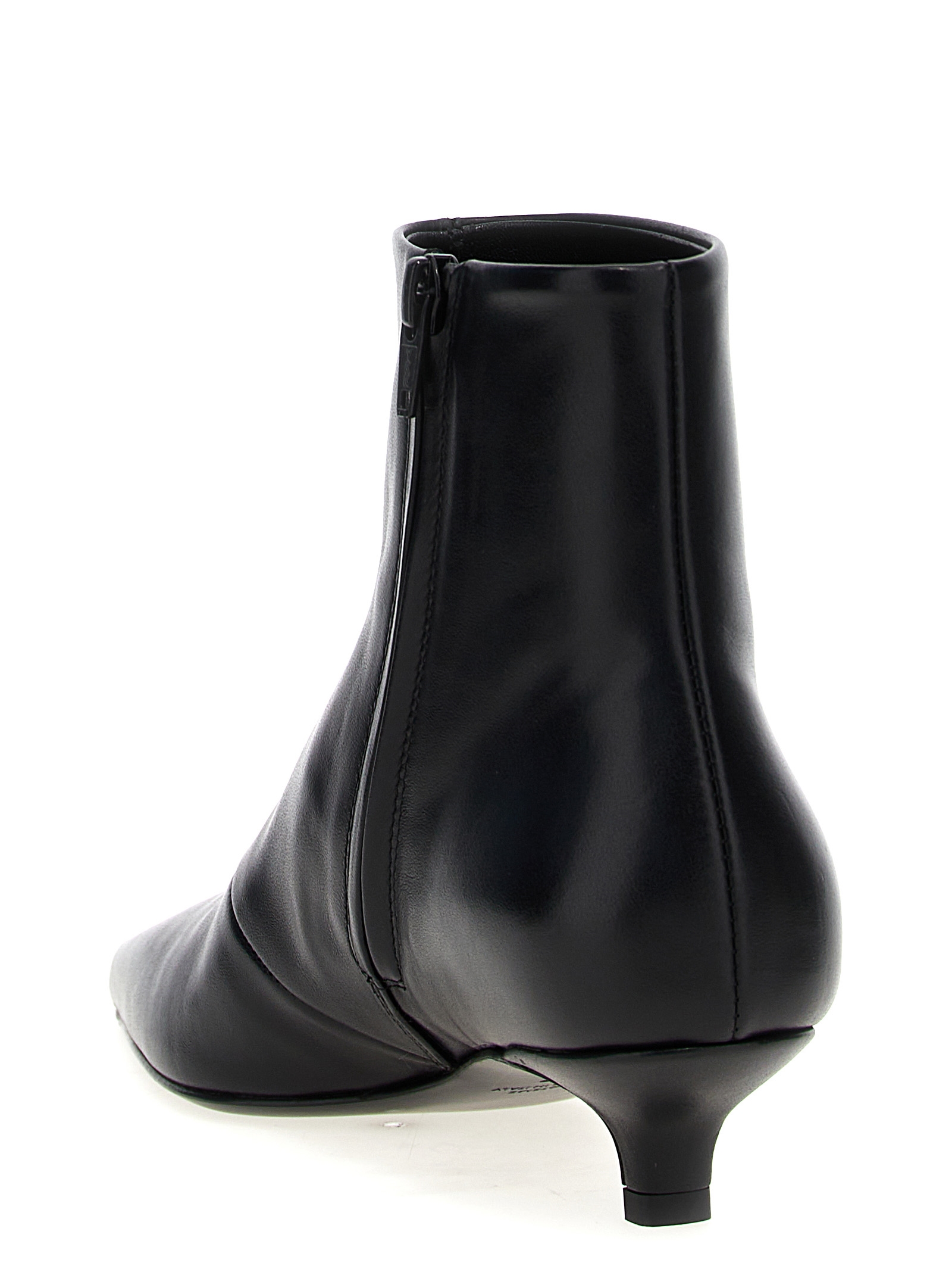Leather ankle boots, side zip closure, leather sole.