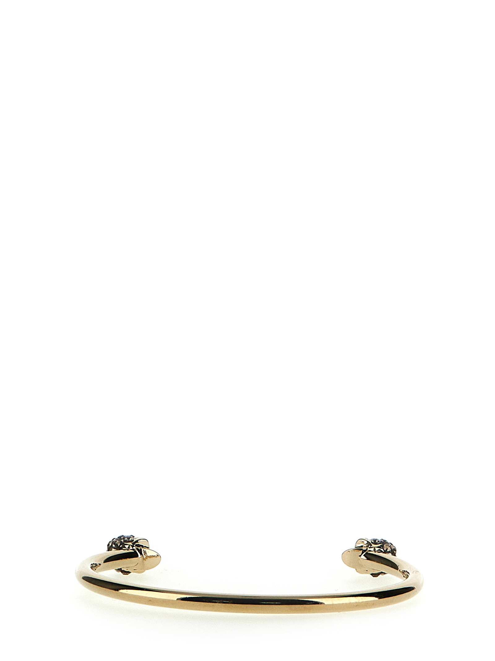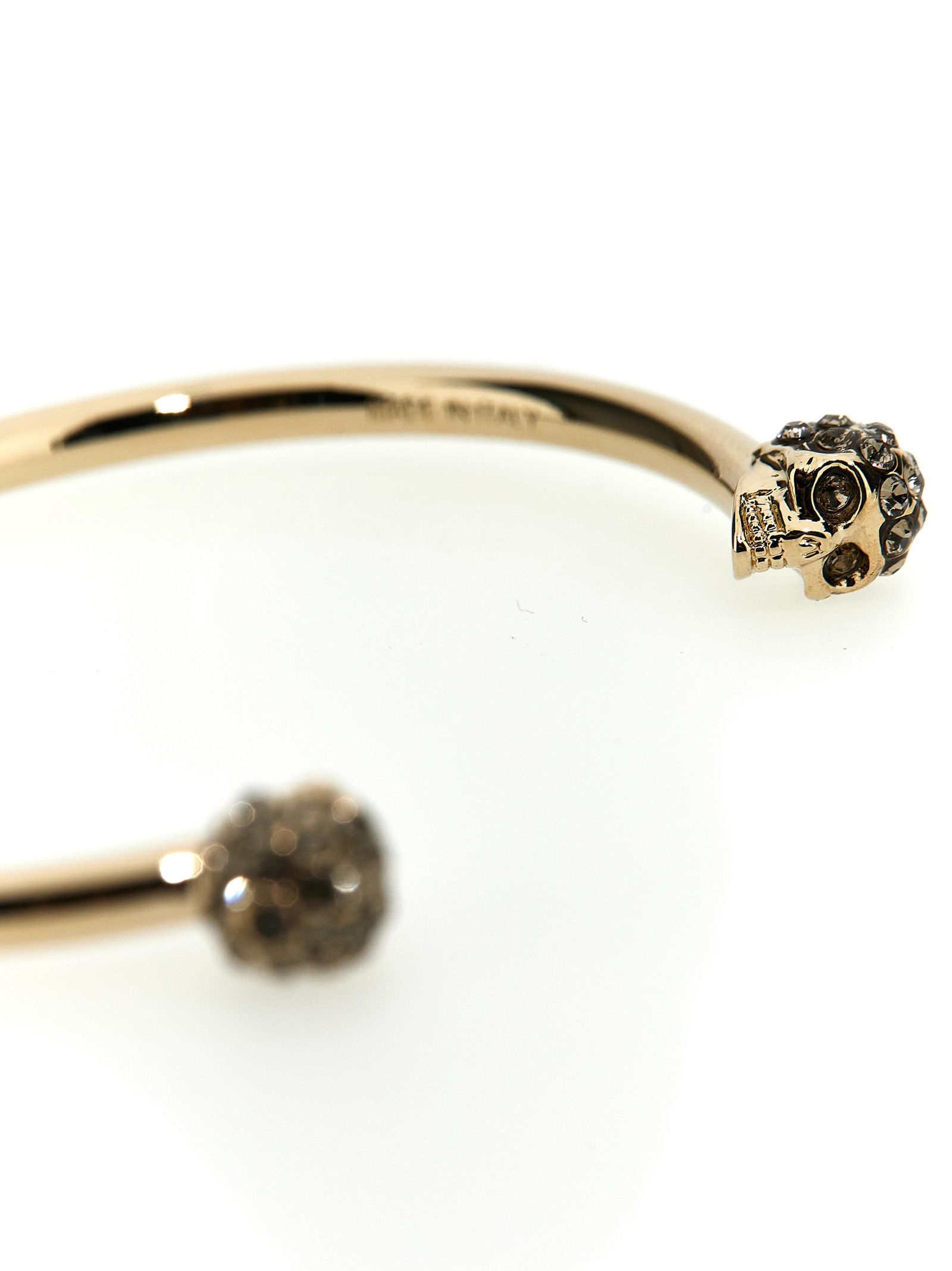 ‘Thin Twin Skull’ bracelet in silver metal with crystal embellishment.