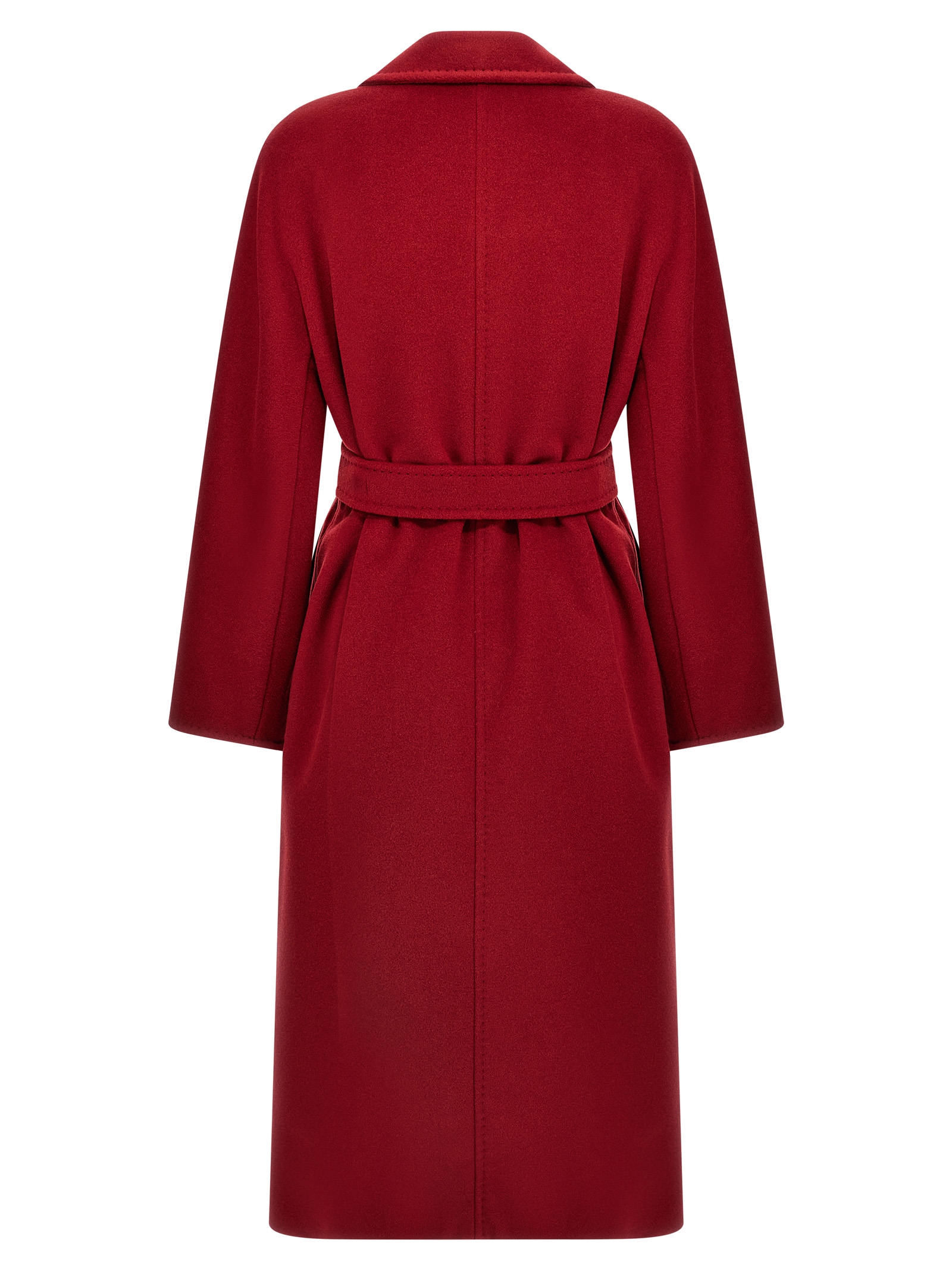 ‘Ticino’ wool and cashmere beaver coat, fold-up kimono sleeves, double-breasted button closure, silk twill lining with central embroidery, pockets, removable belt.